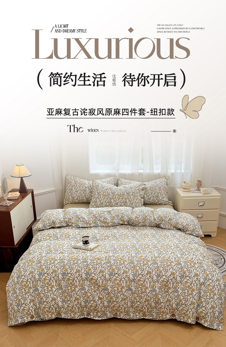 当前位置: 91家纺网 > 商品网购 > 床品套件 > 四件套 > 其它四件套 > 优佳优品 2025秋冬新款A类高克重亚麻复古侘季风复麻系列四件套 繁华绮想