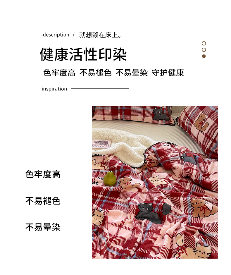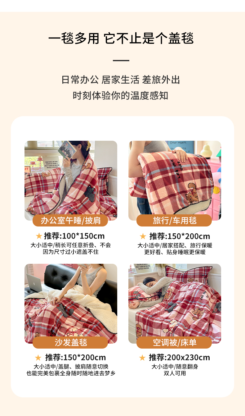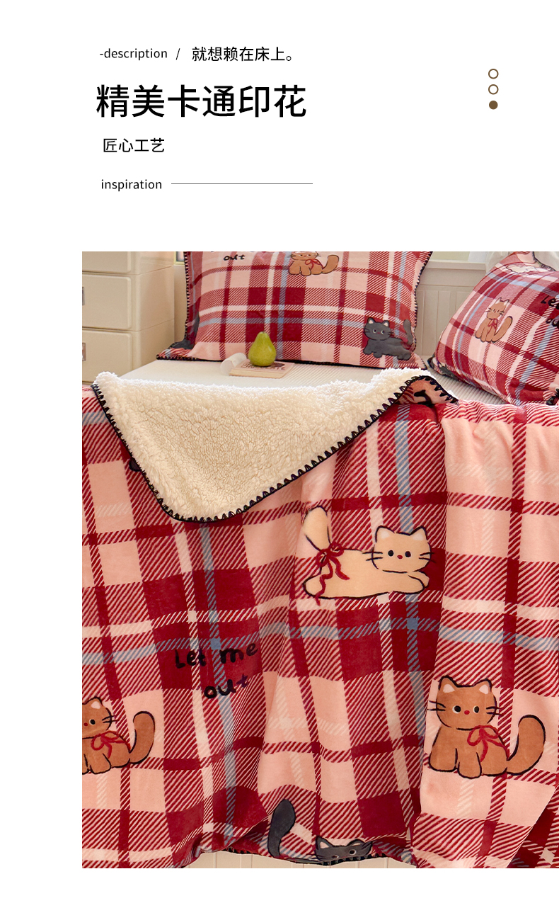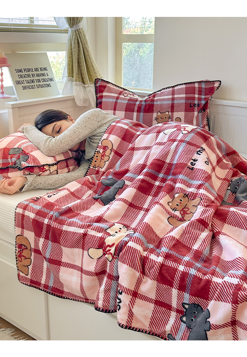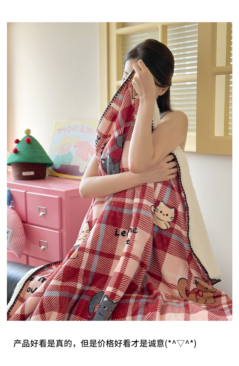 商品名称:繁花家居 2025英伦风高克重羊羔绒牛奶绒贝壳边毛毯毯子 甜梦喵趣
