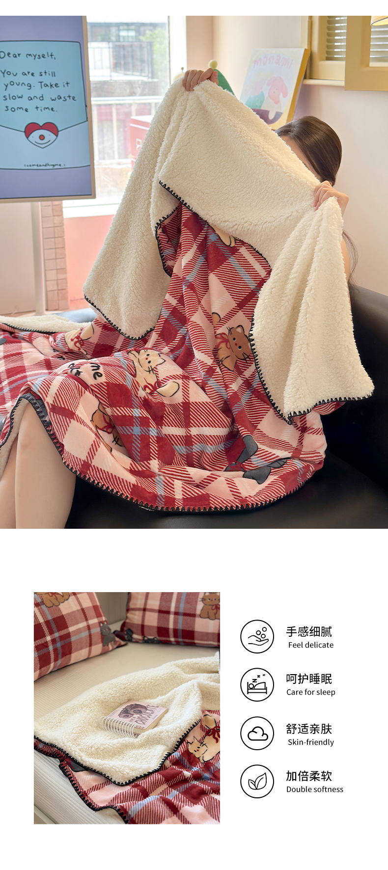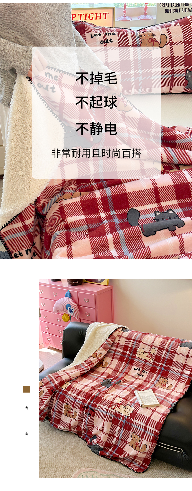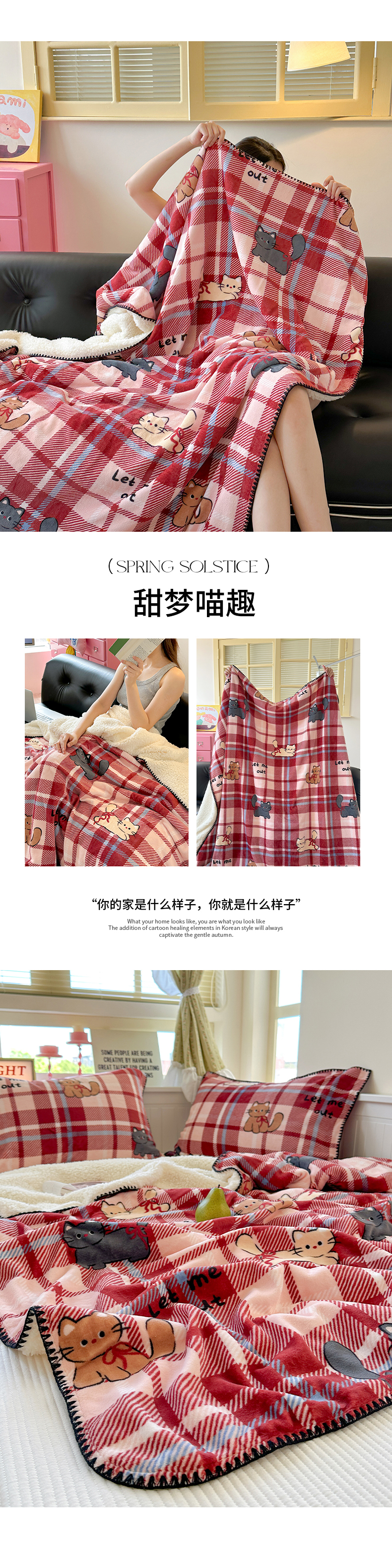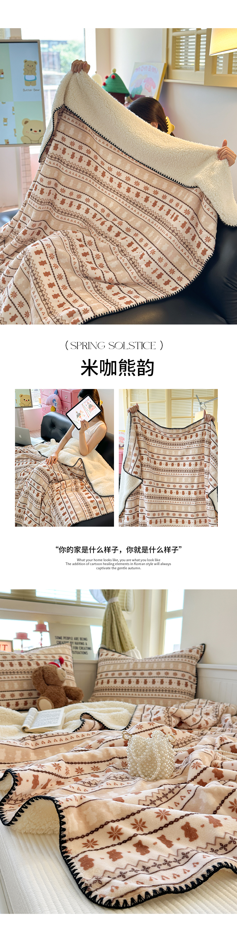 商品名称:繁花家居 2025英伦风高克重羊羔绒牛奶绒贝壳边毛毯毯子 甜梦喵趣