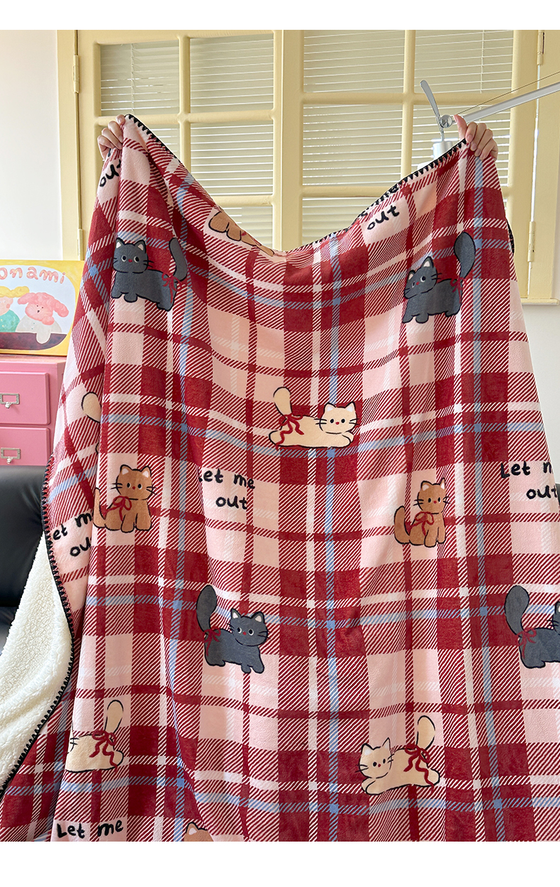 繁花家居 2025英伦风高克重羊羔绒牛奶绒贝壳边毛毯毯子 甜梦喵趣