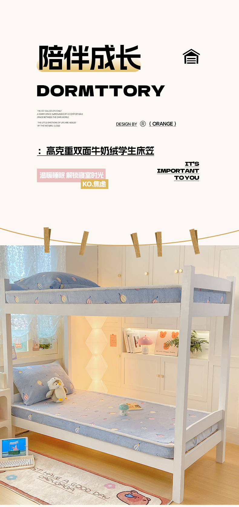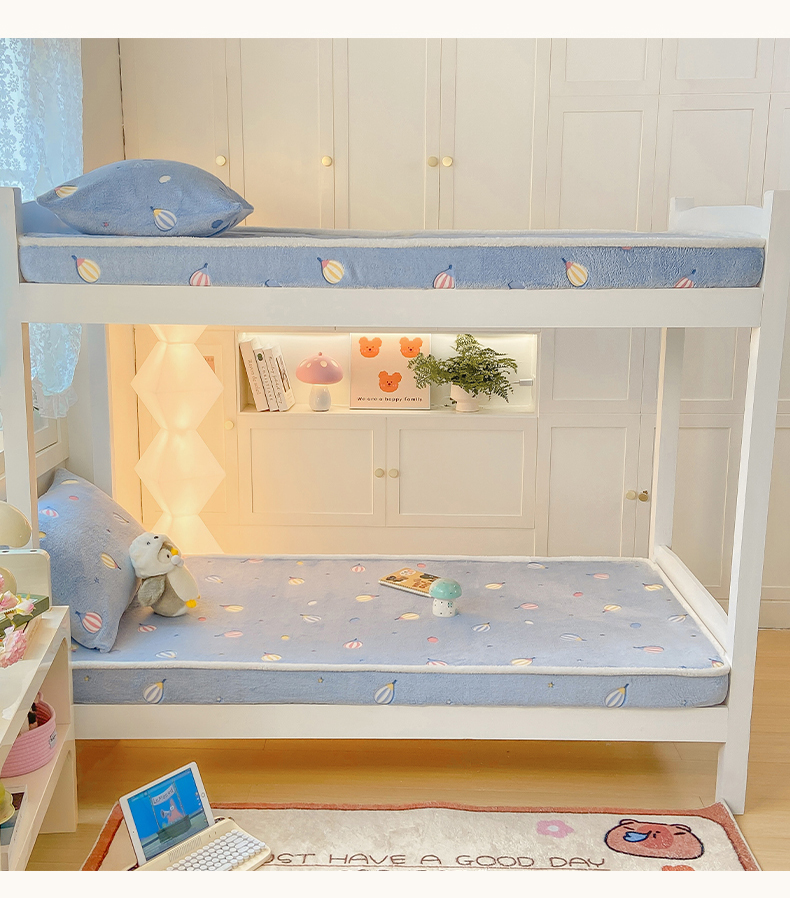 眠势力 2025新款250g双面绒学生床笠单件三件套宿舍上下铺刺绣款牛奶绒床垫保护套 热气球【双面绒刺绣款】