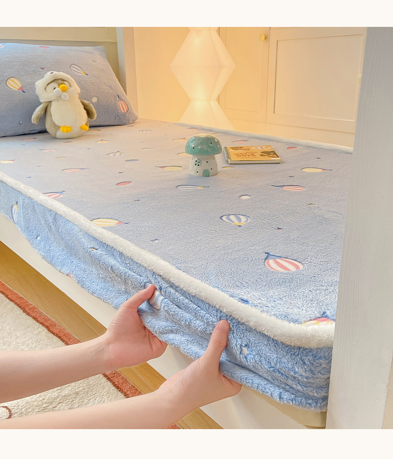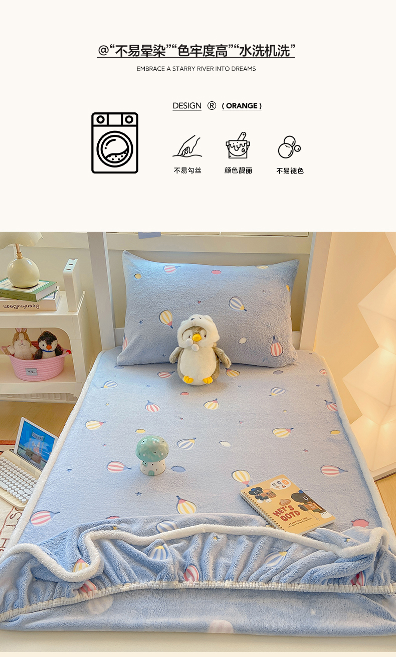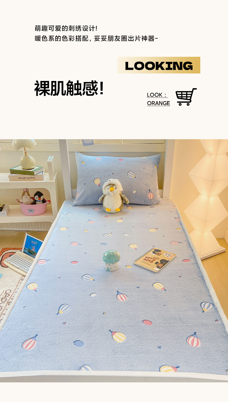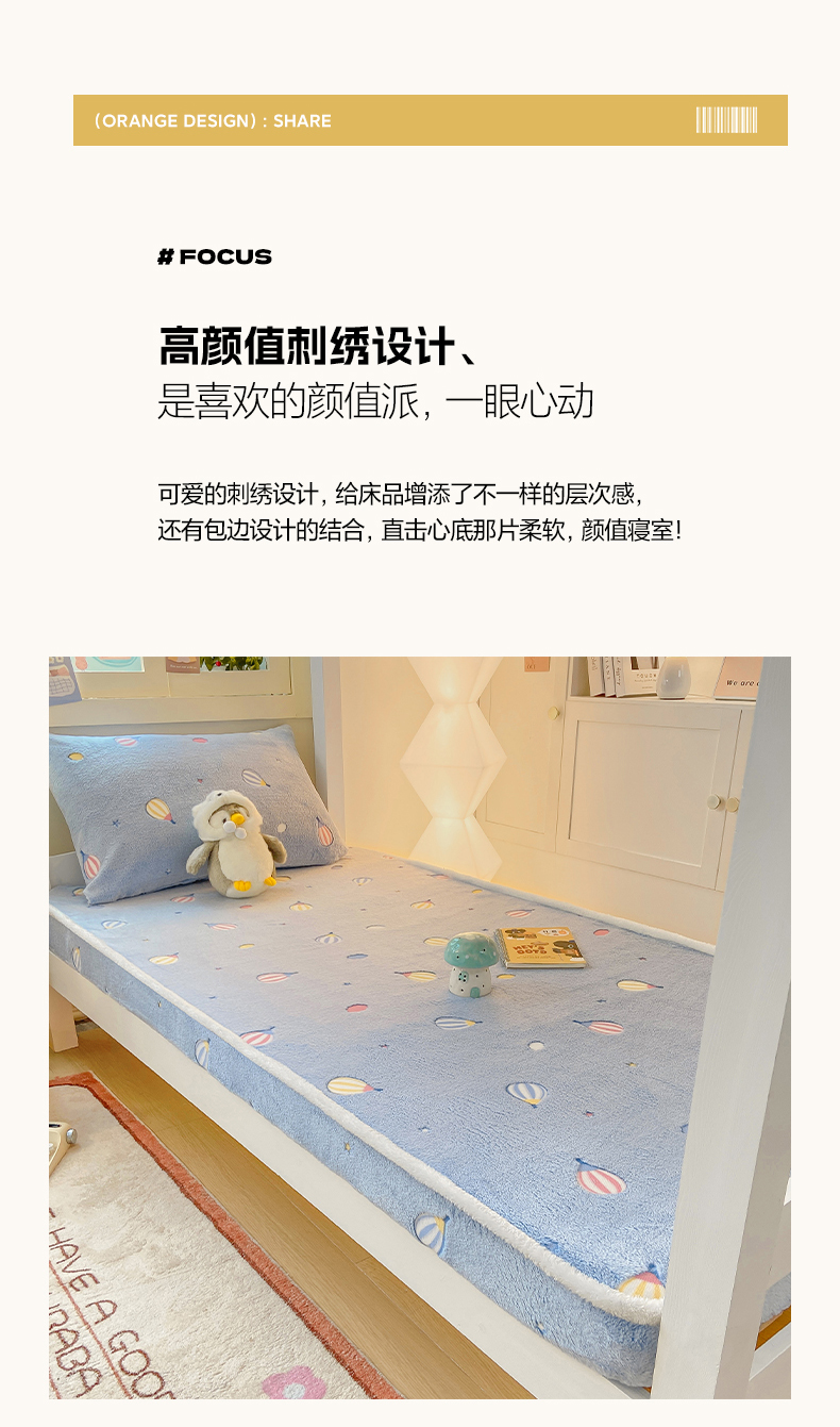 • 91家纺网 家纺一手货源 找家纺 眠势力 2025新款250g双面绒学生床笠单件三件套宿舍上下铺刺绣款牛奶绒床垫保护套 热气球【双面绒刺绣款】