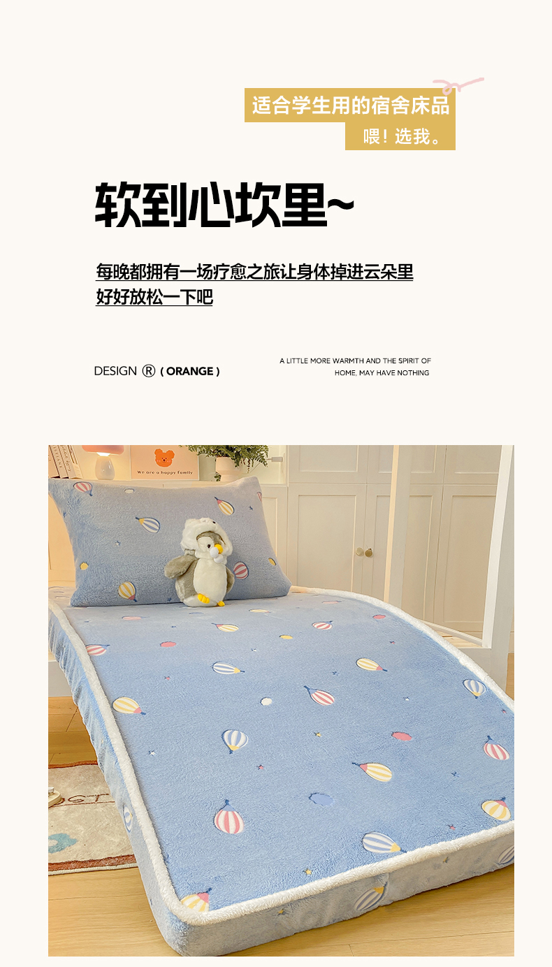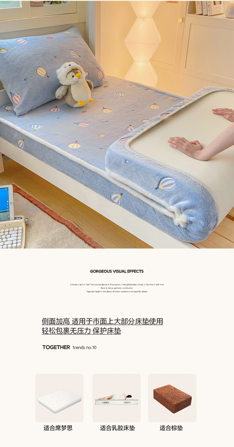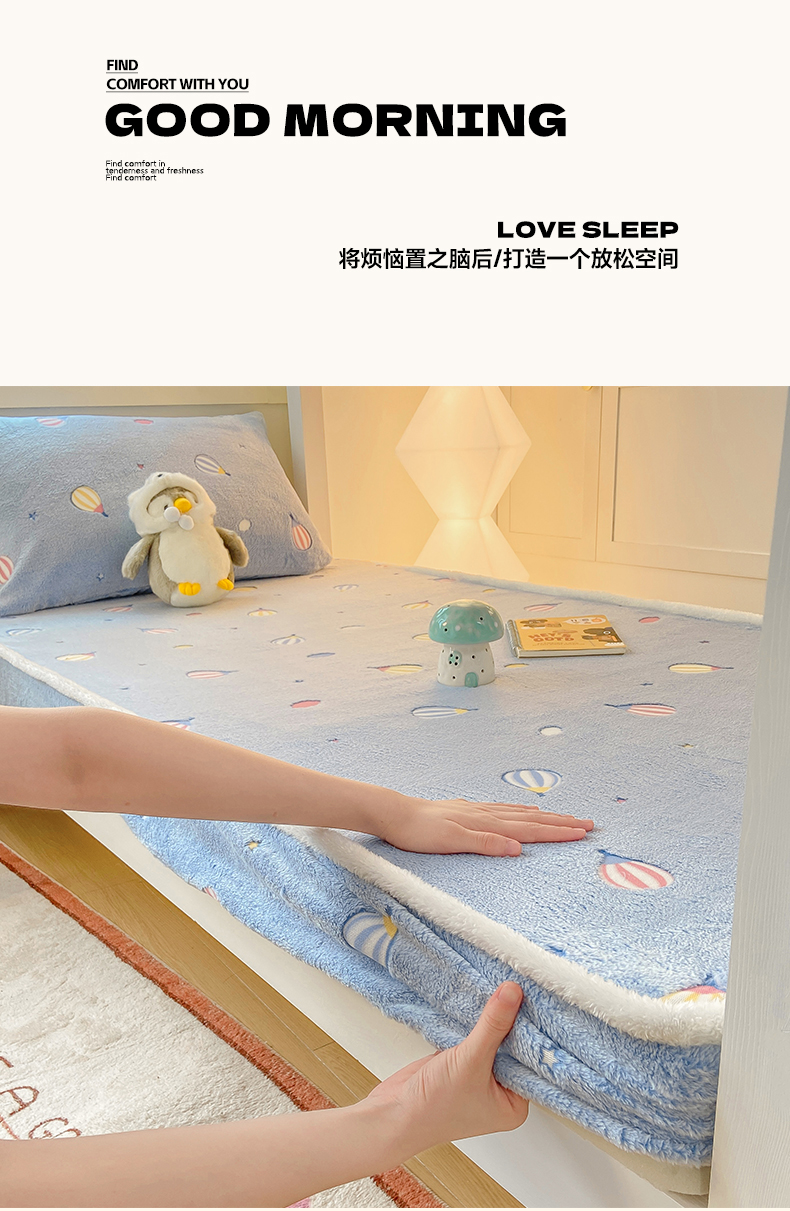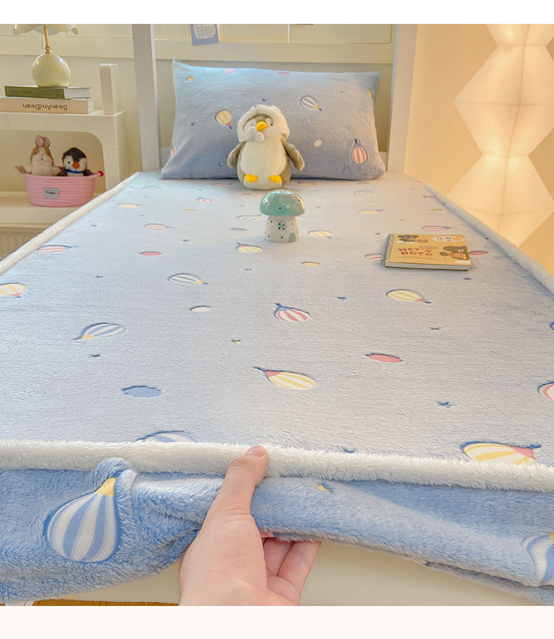 • 91家纺网 家纺一手货源 找家纺 眠势力 2025新款250g双面绒学生床笠单件三件套宿舍上下铺刺绣款牛奶绒床垫保护套 热气球【双面绒刺绣款】