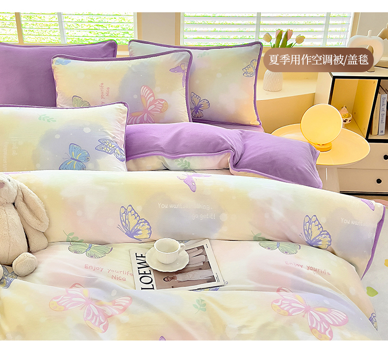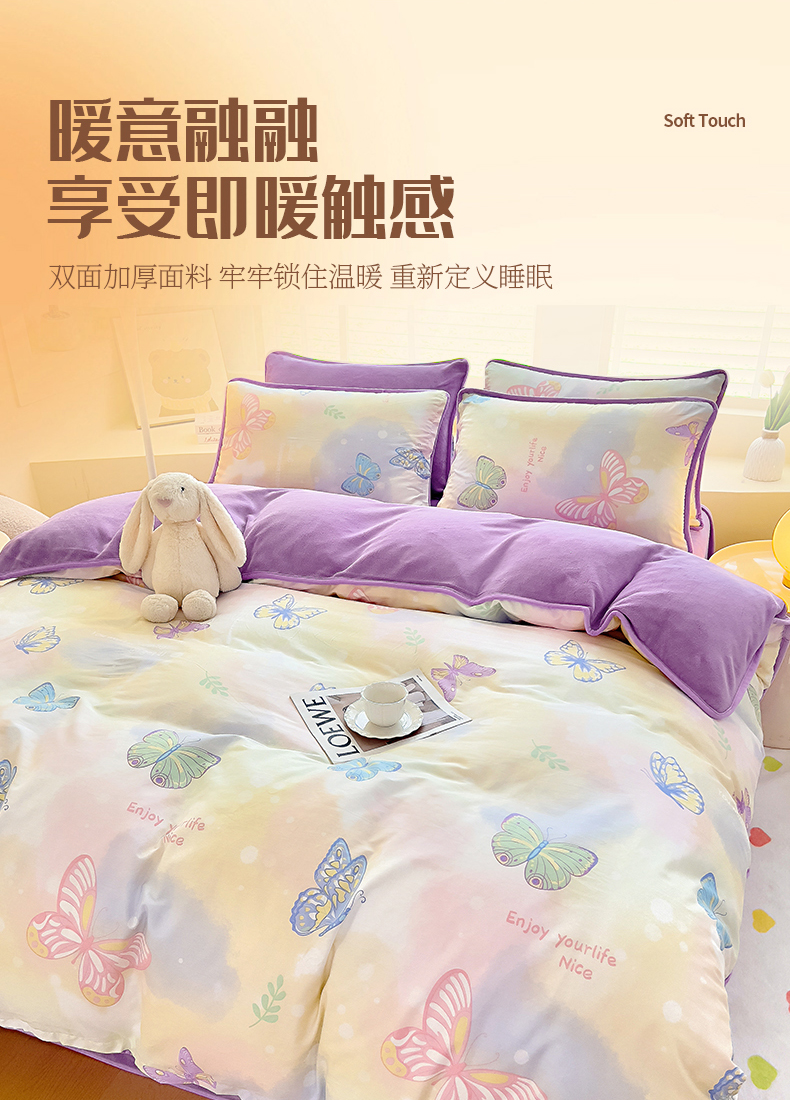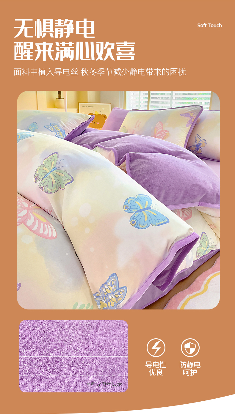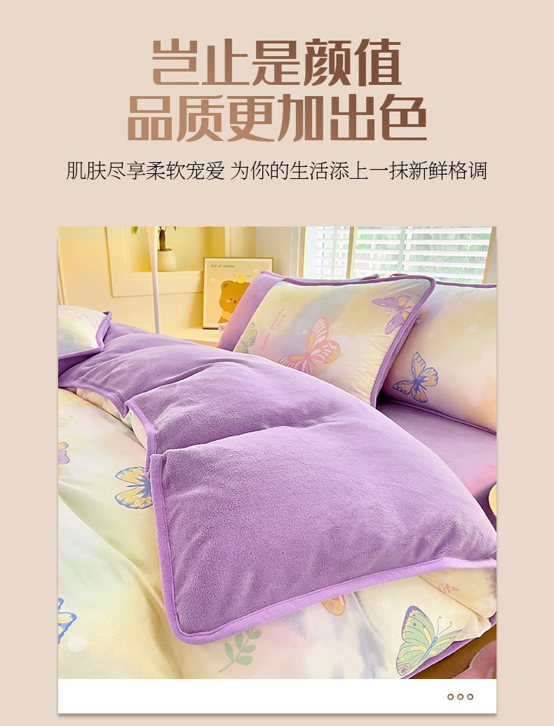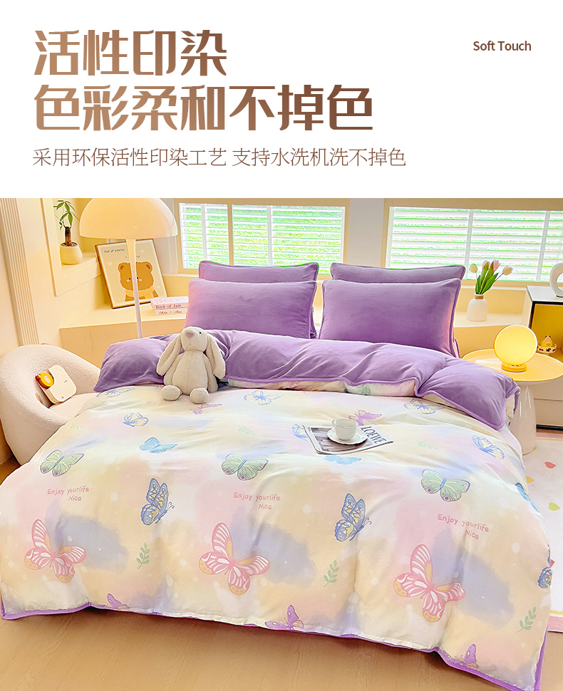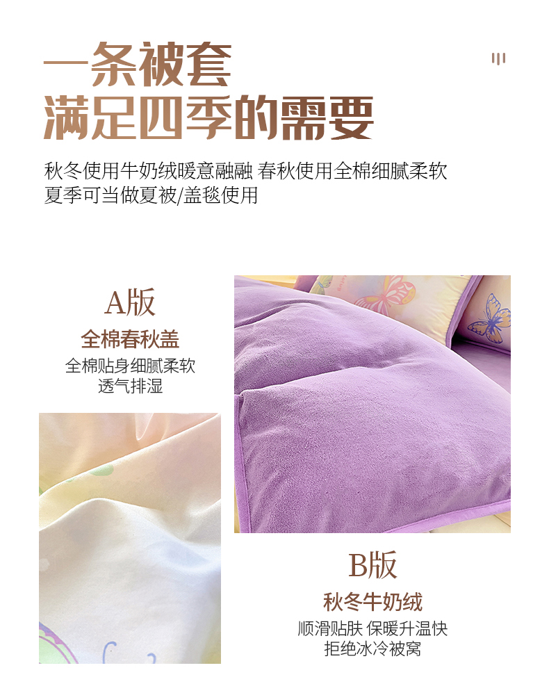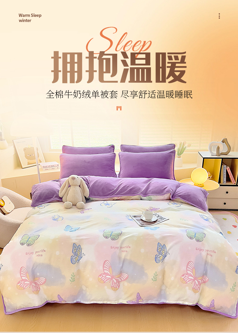 琪琪阁家纺 2025秋冬新款全棉加牛奶绒单被套棉加绒被套 梦蝶