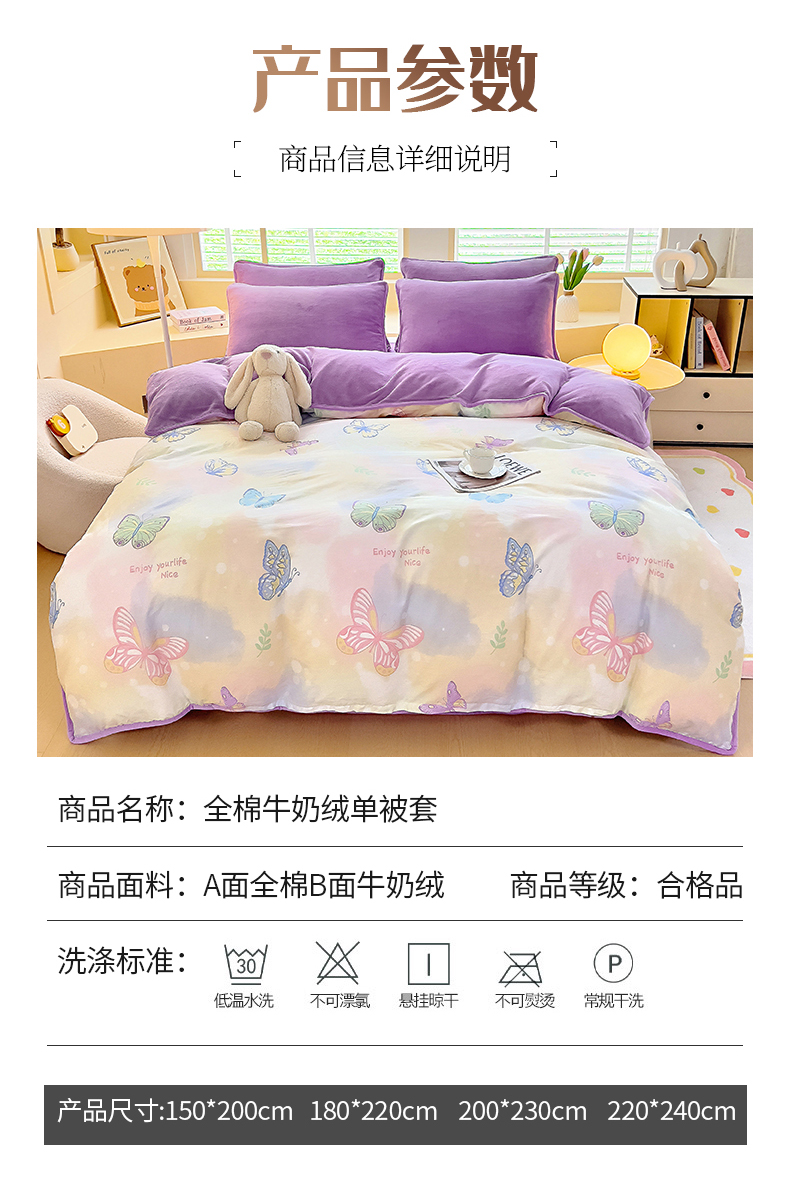 商品名称:琪琪阁家纺 2025秋冬新款全棉加牛奶绒单被套棉加绒被套 梦蝶