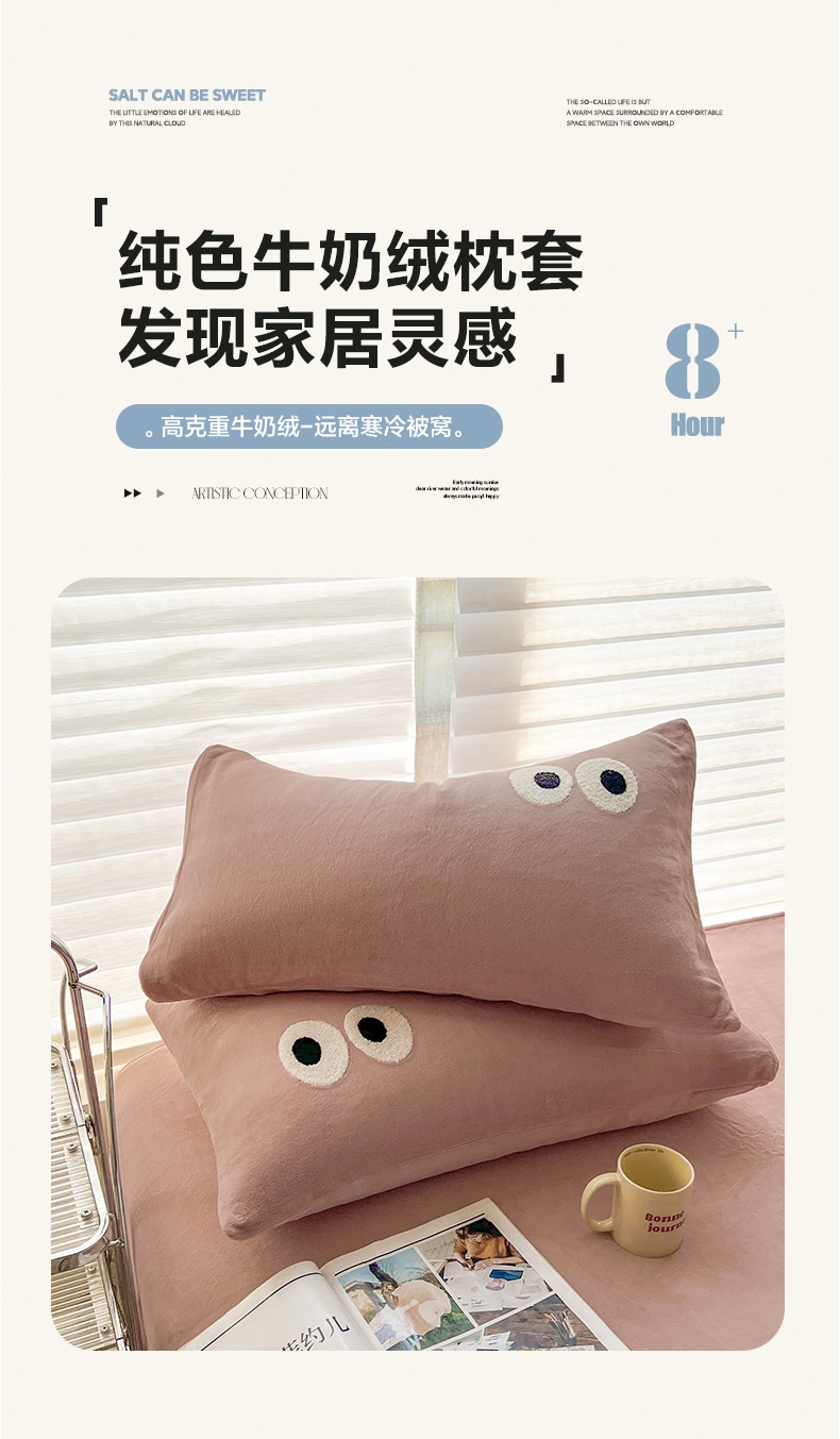 商品名称:悦织湾家纺 2025新款牛奶绒纯色单品枕套冬季加厚保暖透气轻奢时尚卡通枕套单品枕套枕套单件 牛奶绒浅咖