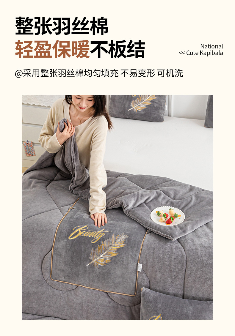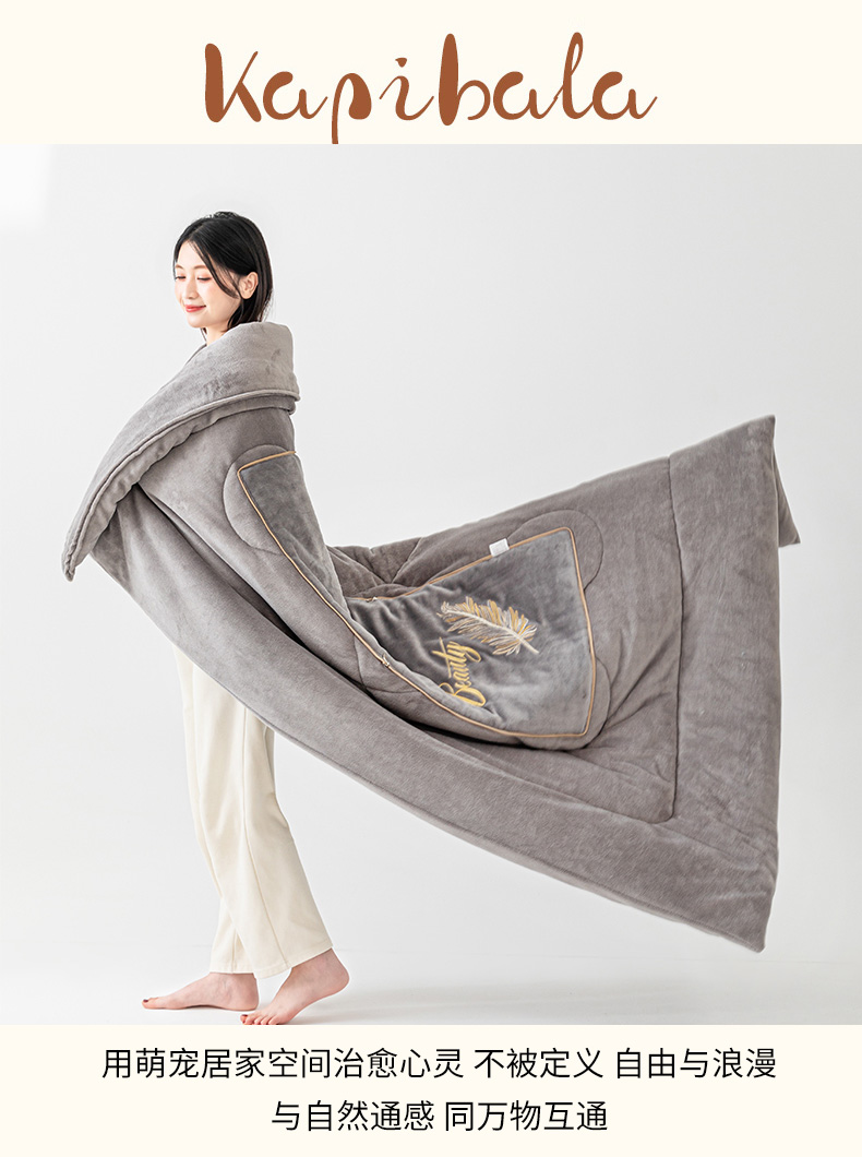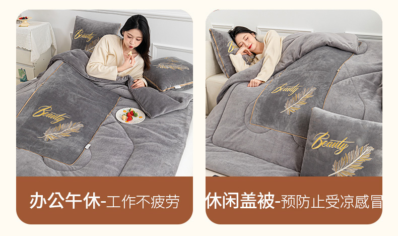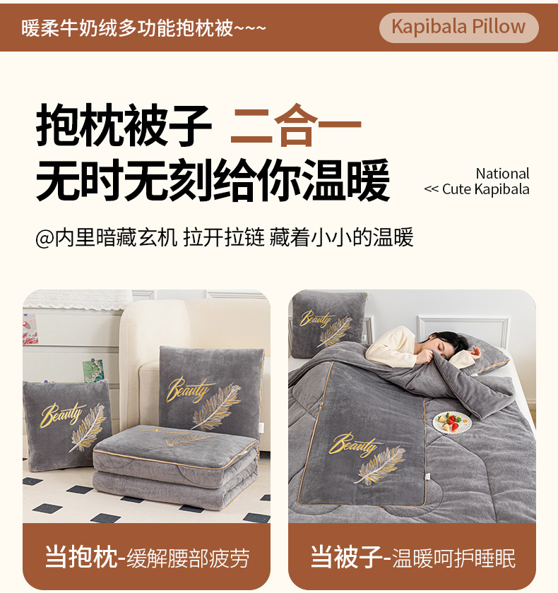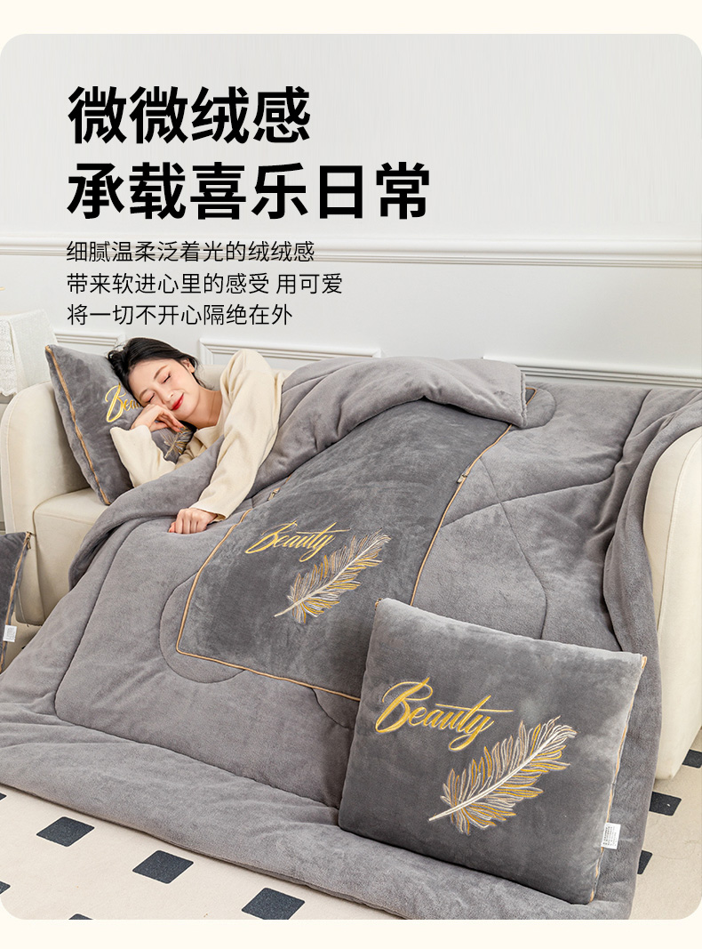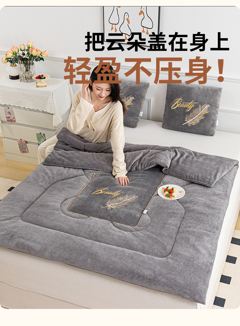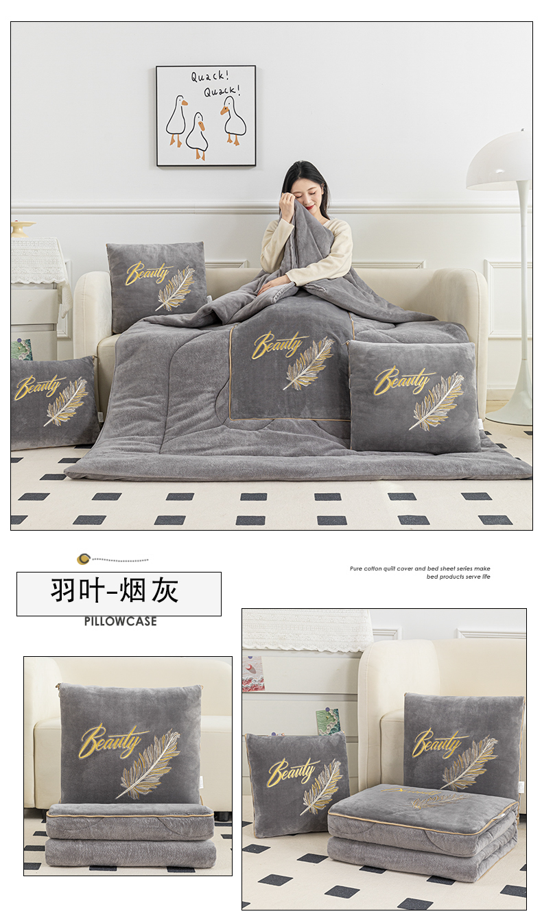 商品名称:哩哩熊 2025新款抱枕被子两用加厚二合一汽车载枕头办公室午睡毯子冬天靠枕-羽叶 羽叶-烟灰