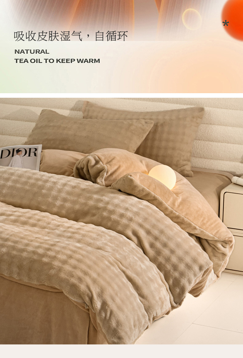 眠博士 2025新款兔绒牛奶绒加厚保暖四件套-凯瑟琳场景一 凯瑟琳-暖咖