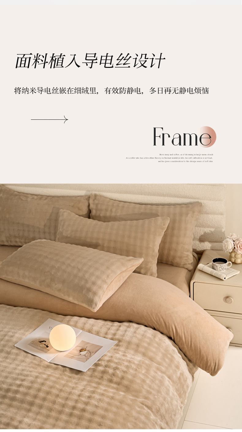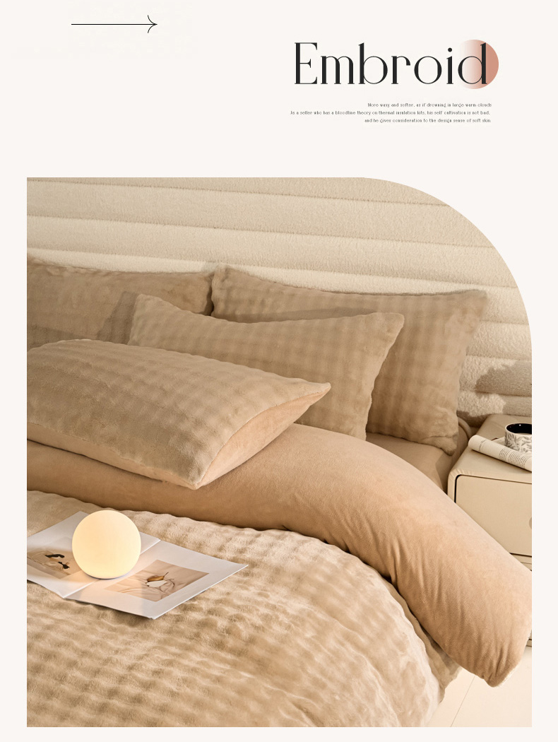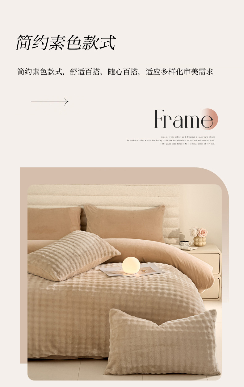商品名称:眠博士 2025新款兔绒牛奶绒加厚保暖四件套-凯瑟琳场景一 凯瑟琳-暖咖