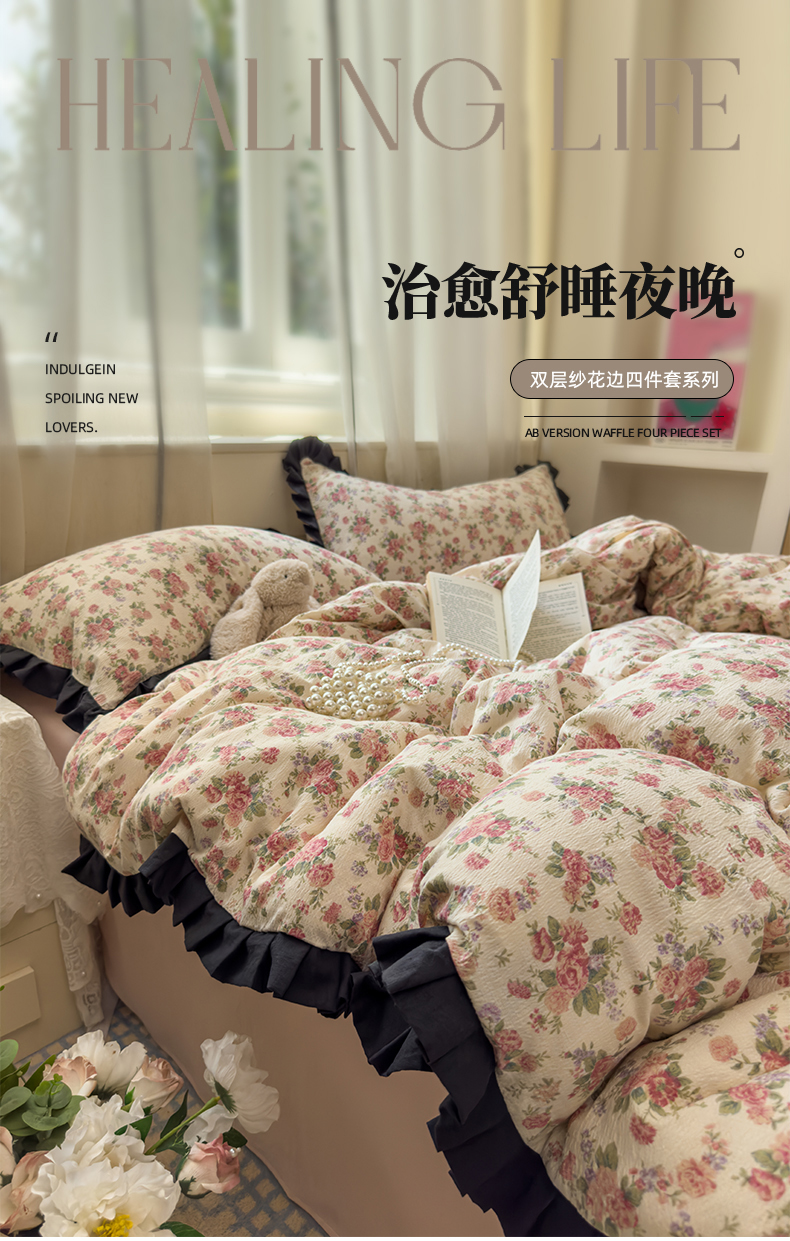 (总)老K (原美阁) 2024新款韩版水洗棉四件套双层雪纺花边公主风四件套-云朵棉黑蝴蝶,1黑蝴蝶-珍珠白,黑蝴蝶-莓果粉,黑蝴蝶-奶油黄,黑蝴蝶-浅粉,黑蝴蝶-香芋紫,黑蝴蝶-优雅灰