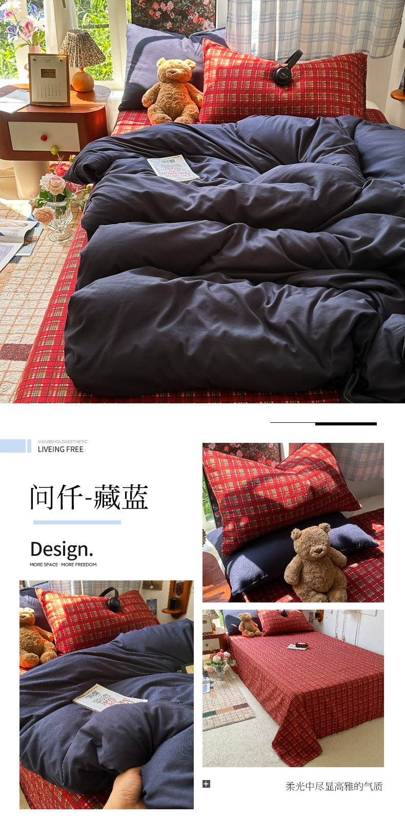 (总)花伞家居 2026新款老钱学院风毛巾绣双层纱加厚四件套,复古棕竖条-瑞特,卡其豹纹-露丝,热情豹纹-露丝,日系条纹-瑞特,苏格兰红格-露丝,英伦格纹-瑞特,中古森系-露丝