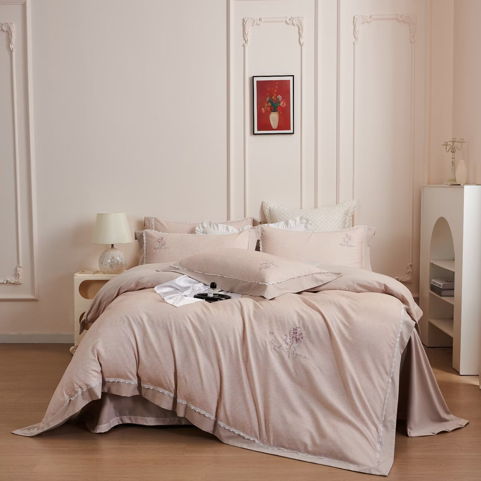 玖玖爱家纺 2025新款160支花边长绒棉纯棉四件套-卡曼 卡曼-朱草灰