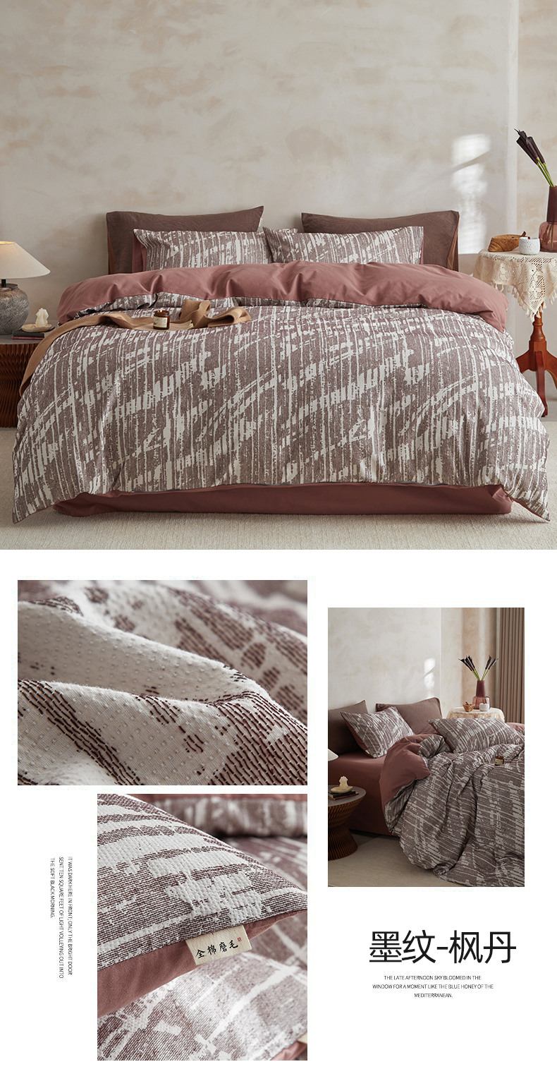 当前位置: 91家纺网 > 商品网购 > 床品套件 > 四件套 > 磨毛活性四件套 > 简宜家居(朝初家纺) 2025新款全棉提花纯棉加厚磨毛四件套 墨纹-枫丹