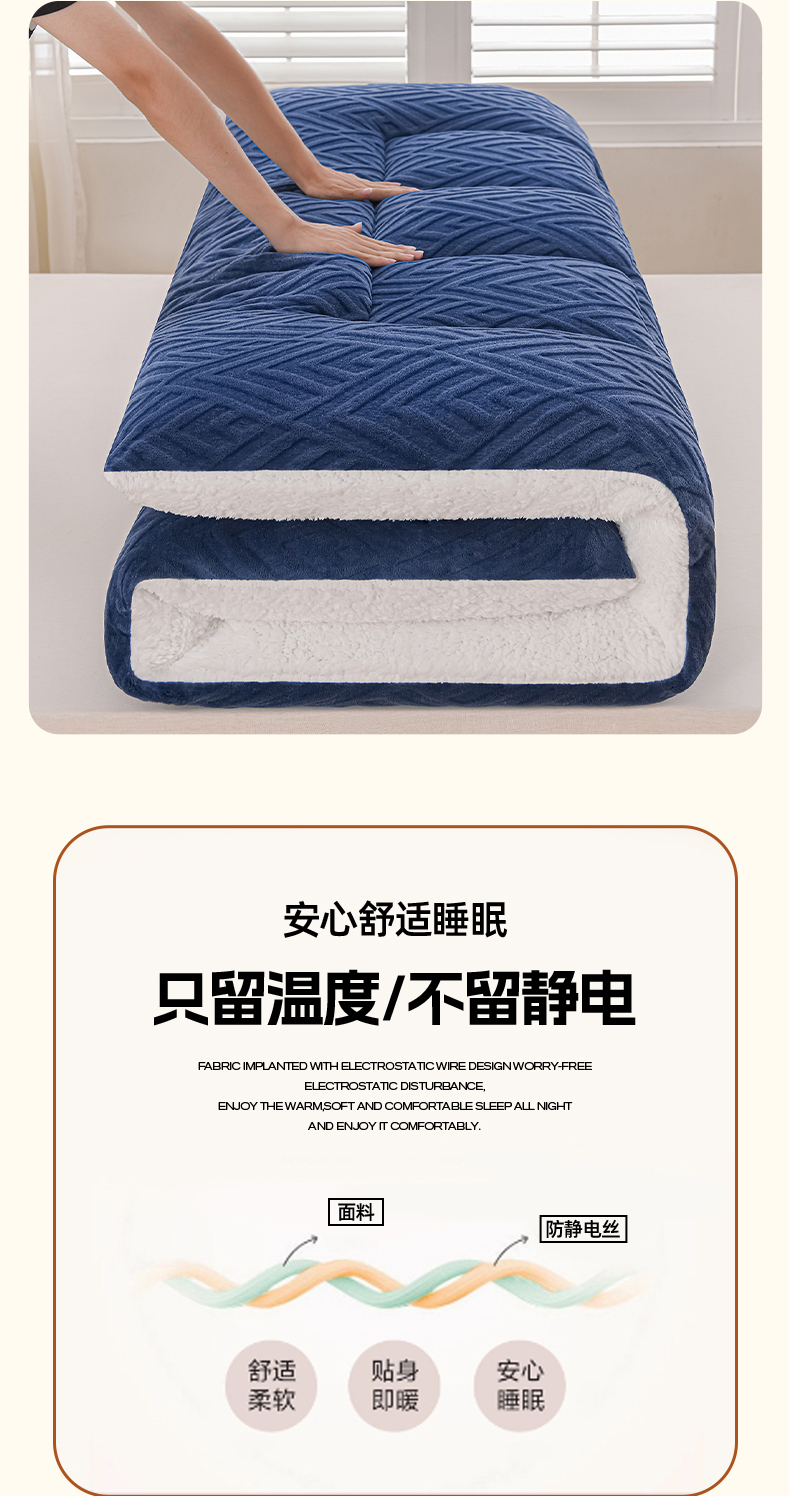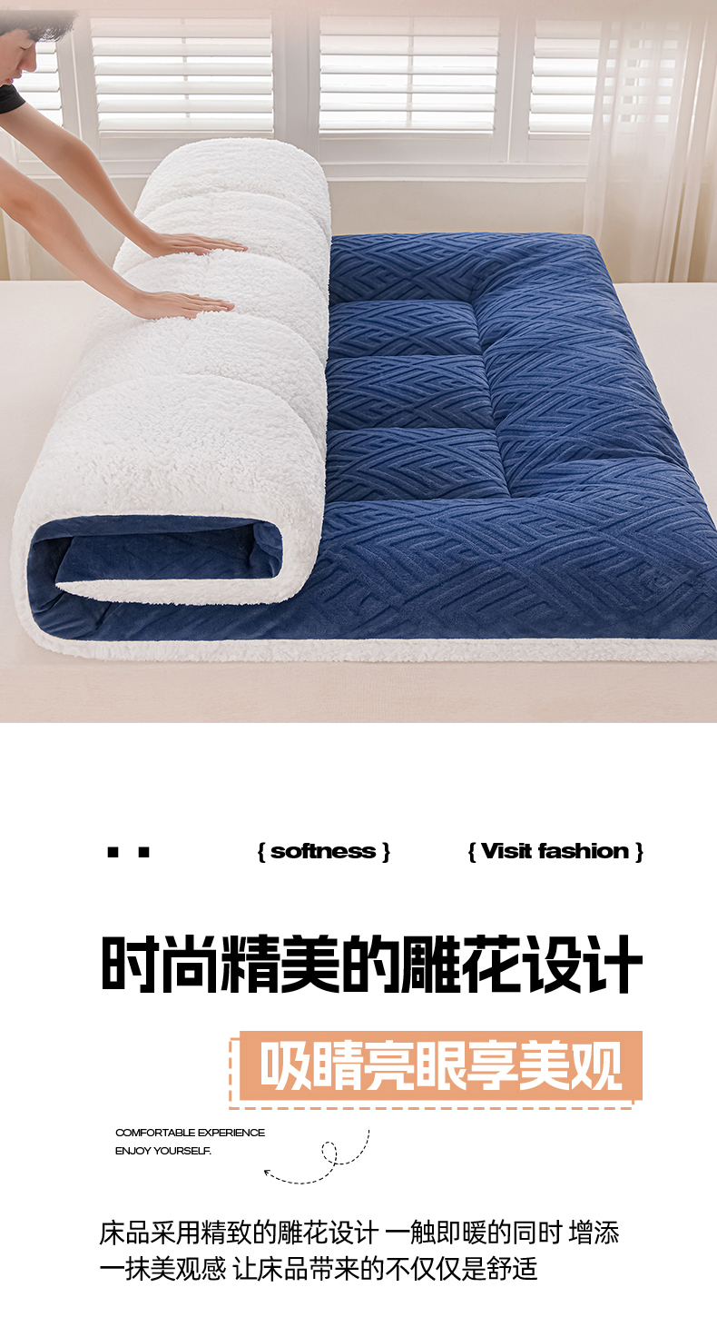 当前位置: 91家纺网 > 商品网购 > 床垫/床褥 > 羊羔绒床垫 > 金灵居 2025新款雕花牛奶绒床垫羊羔绒床垫床褥子跨境外贸 蓝拼白