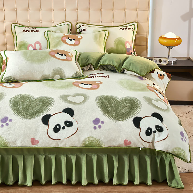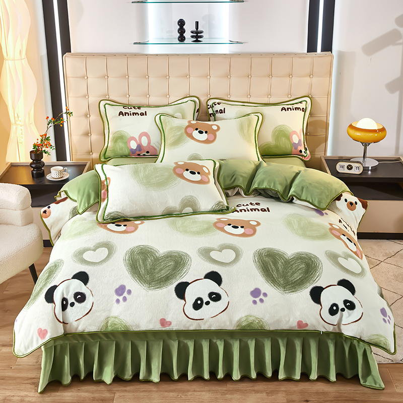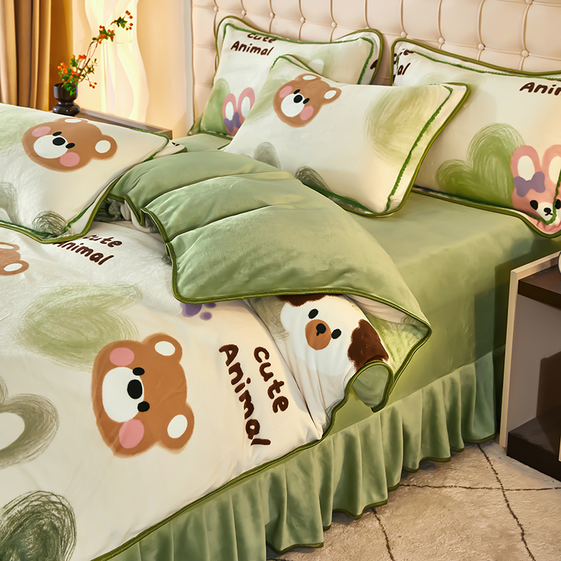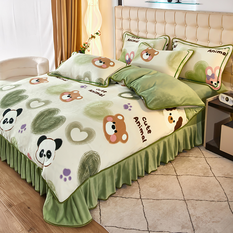 栩裕 2025新款7斤重牛奶金貂绒印花牛奶绒四件套 可爱熊
