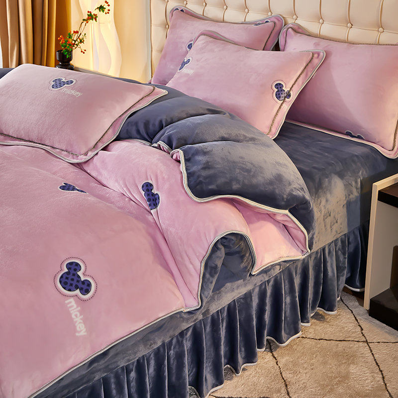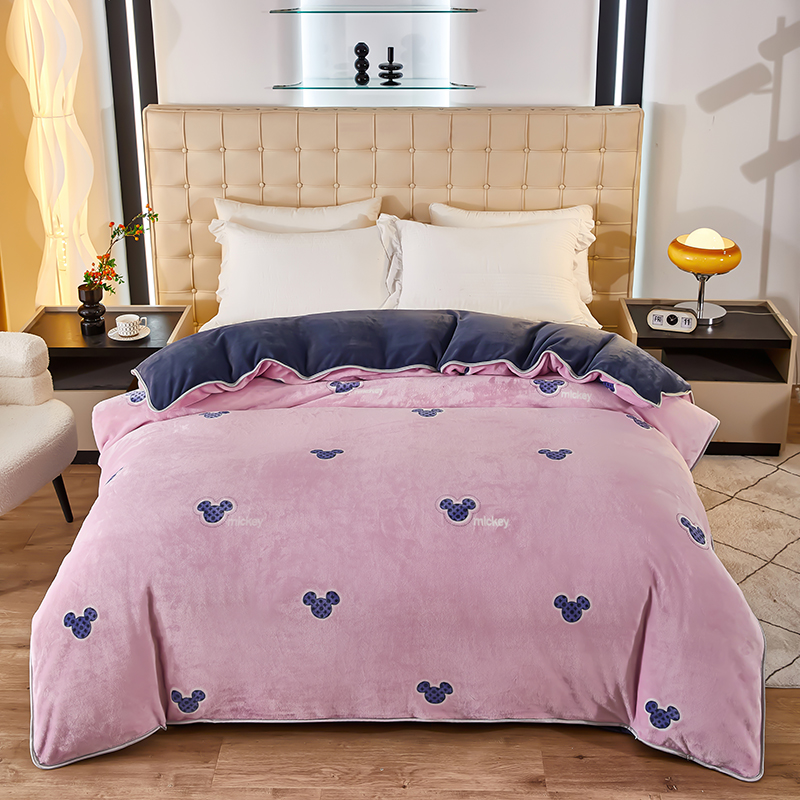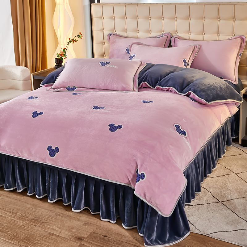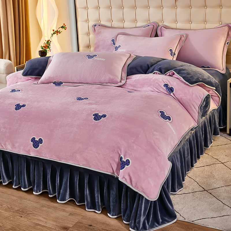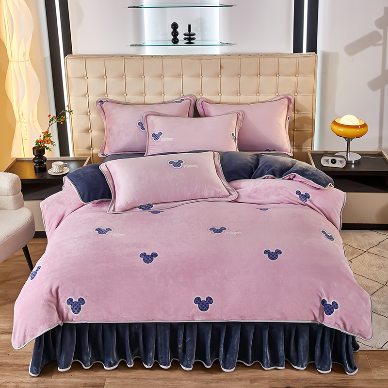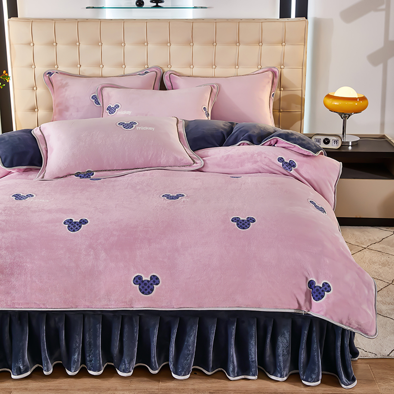 栩裕 2025新款7斤重牛奶金貂绒印花牛奶绒四件套 童心粉