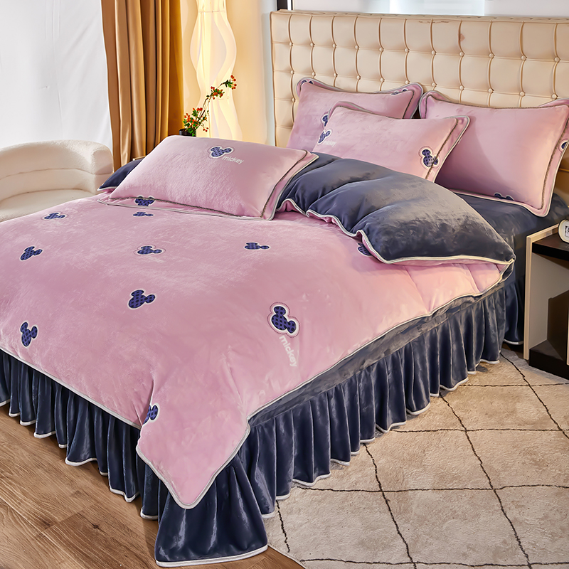 商品名称:栩裕 2025新款7斤重牛奶金貂绒印花牛奶绒四件套 童心粉