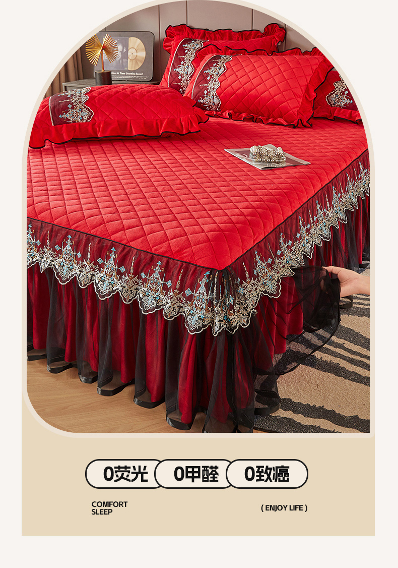 当前位置: 91家纺网 > 商品网购 > 床品套件 > 四件套 > 水晶绒四件套 > 恋尚 2025新款水晶绒保暖床裙四件套-梵蒂莎(控价) 梵蒂莎-品红
