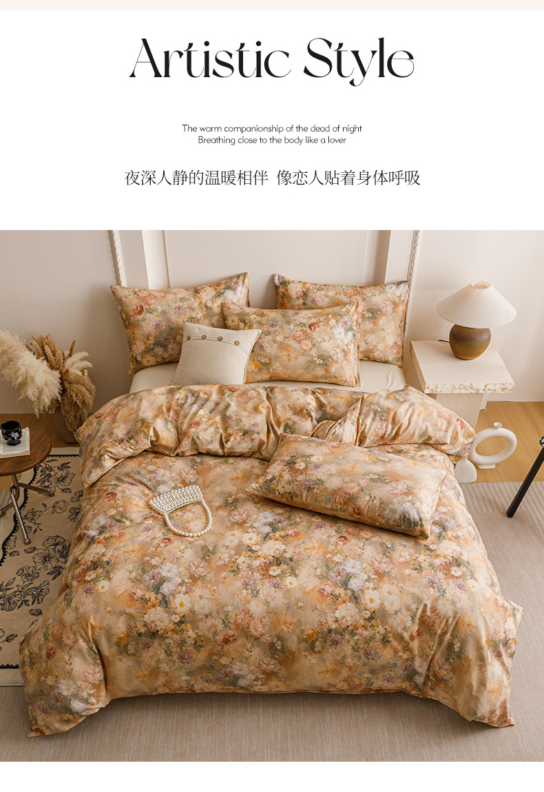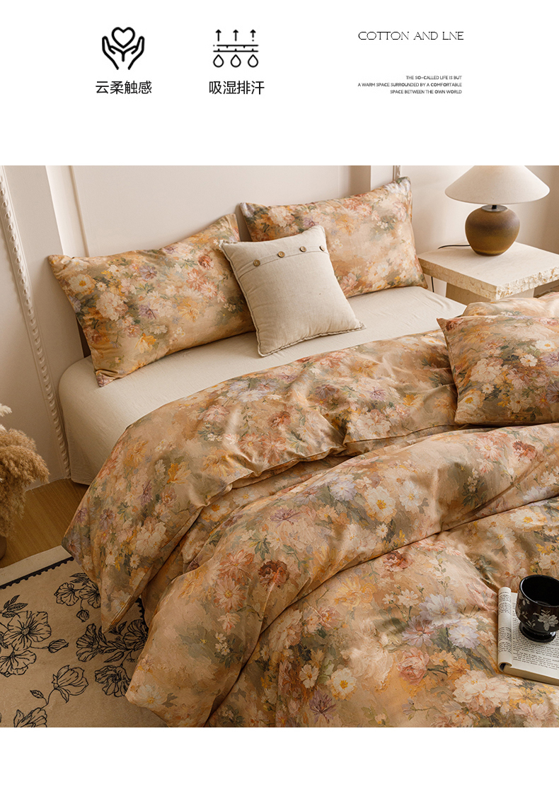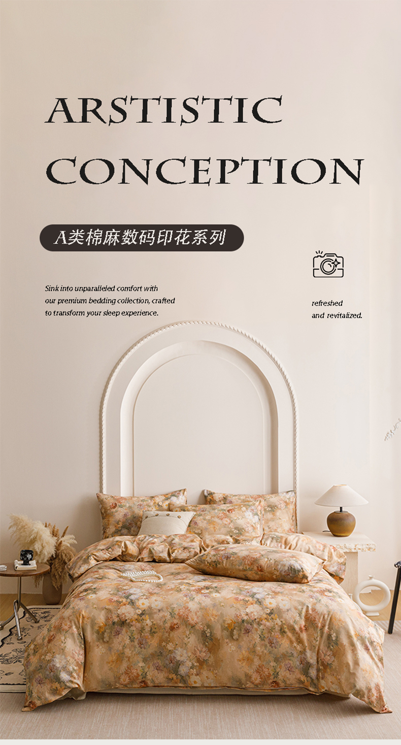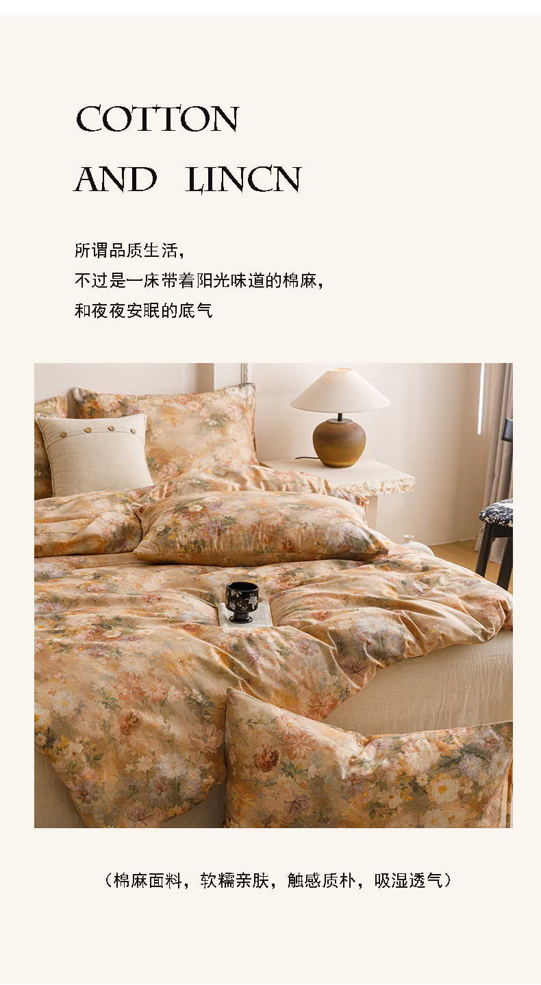 当前位置: 91家纺网 > 商品网购 > 床品套件 > 四件套 > 其它四件套 > 爱思佳 2025新款棉麻数码印花四件套 雅菲韵-咖