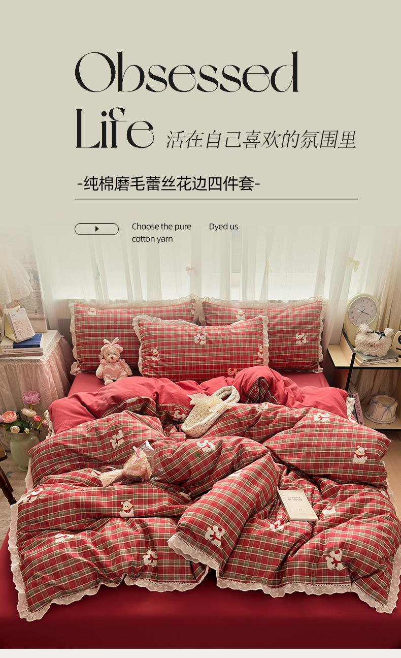 (总)女子家纺 2025新款全棉纯棉磨毛蕾丝花边四件套