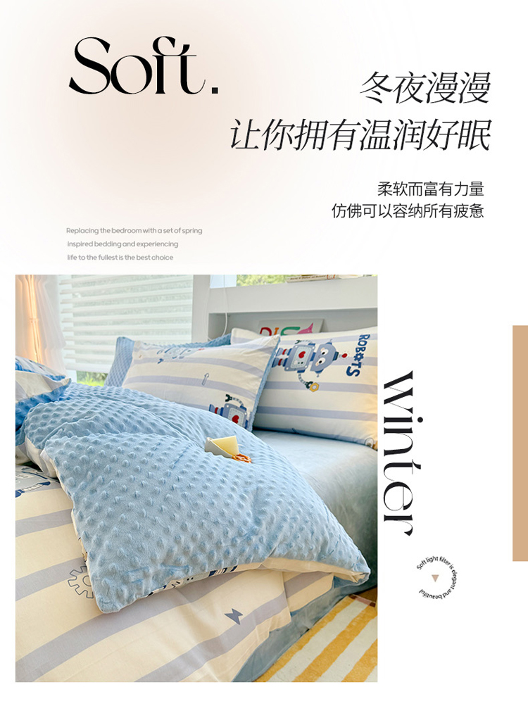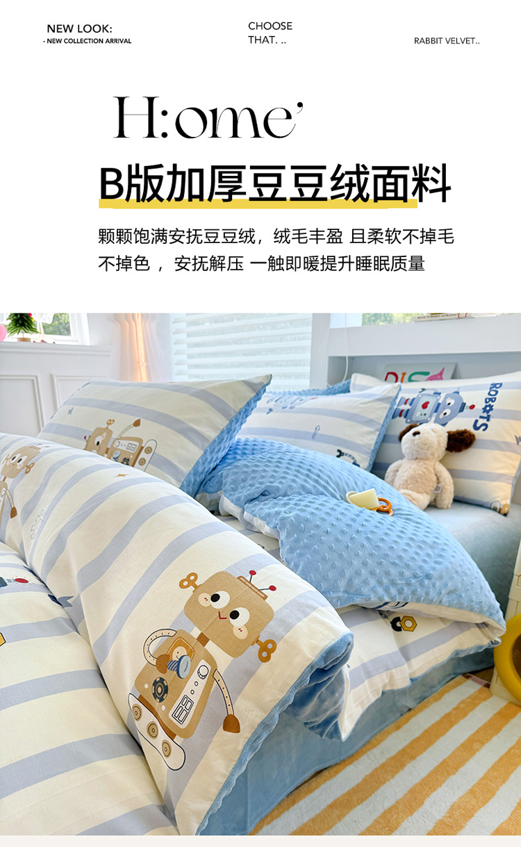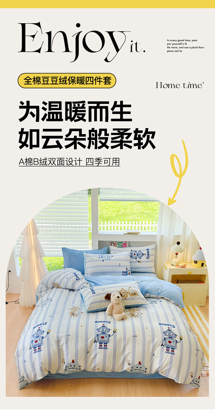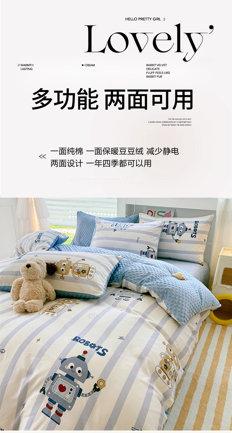 当前位置: 91家纺网 > 商品网购 > 床品套件 > 四件套 > 全棉普通四件套 > 丫丫家纺 2025学生季全棉高克重豆豆绒三四件套加厚保暖婴儿绒牛奶绒单被套单人双人被套加大号棉加绒三四件套 机器人