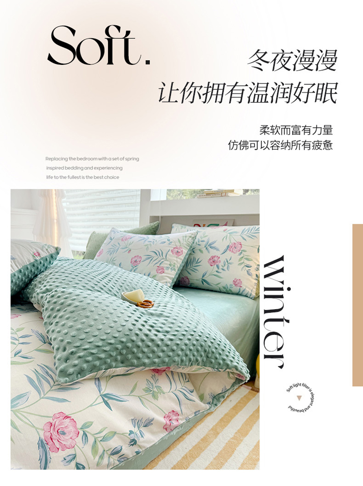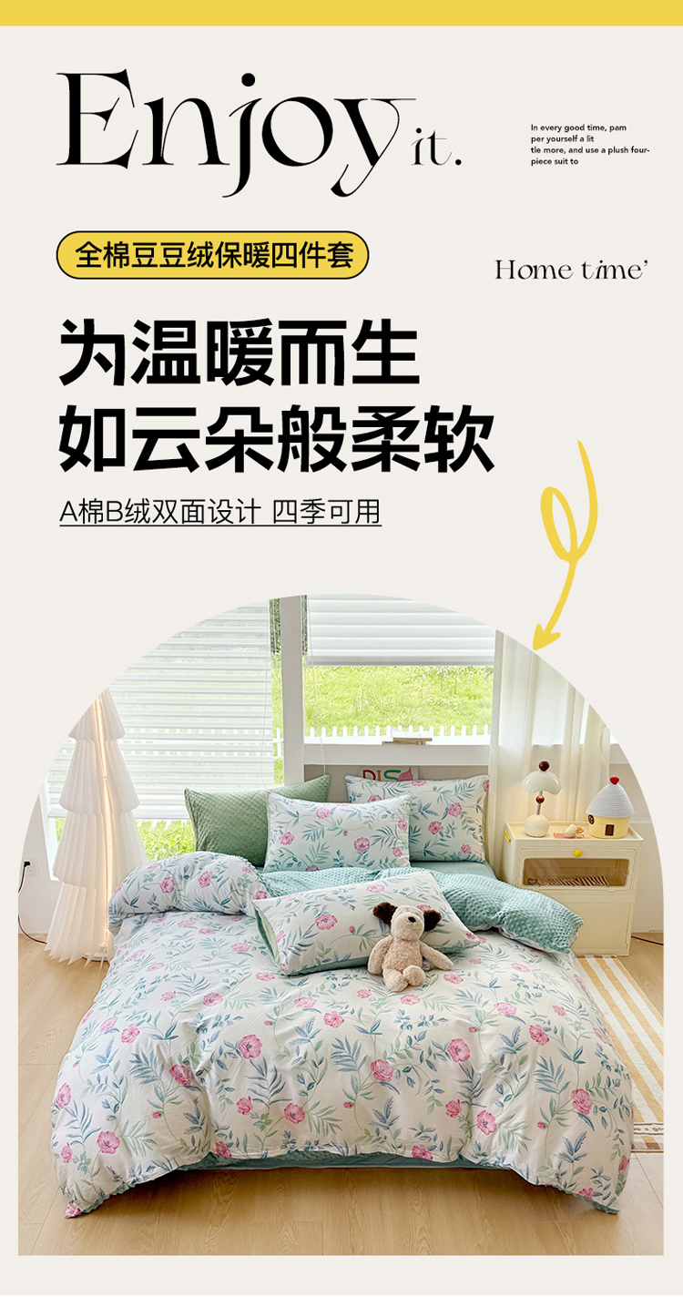 当前位置: 91家纺网 > 商品网购 > 床品套件 > 四件套 > 全棉普通四件套 > 丫丫家纺 2025学生季全棉高克重豆豆绒三四件套加厚保暖婴儿绒牛奶绒单被套单人双人被套加大号棉加绒三四件套 倾城之美