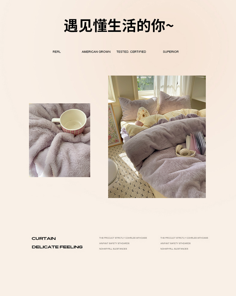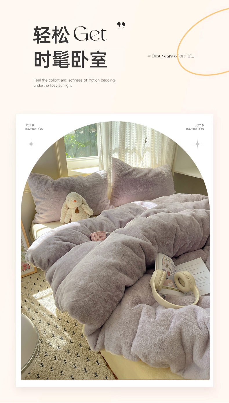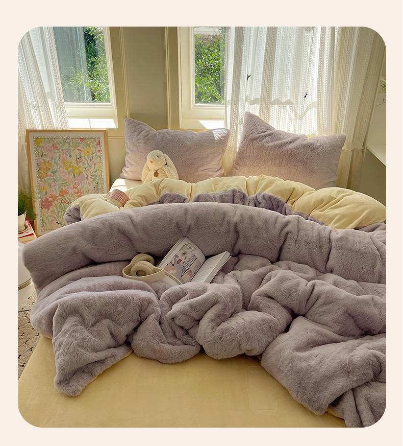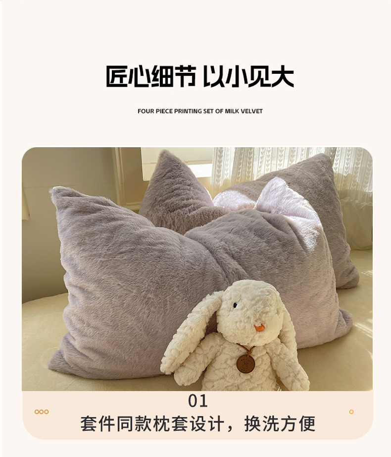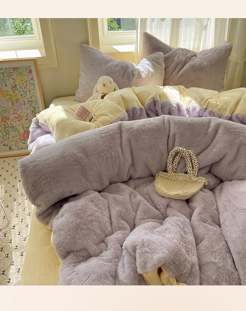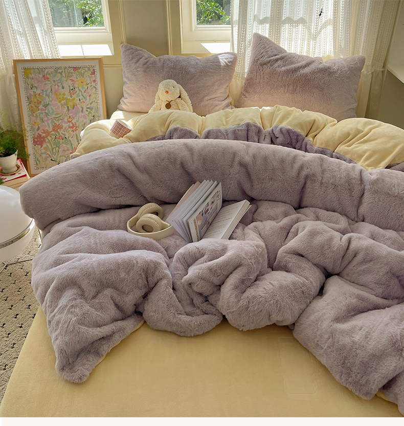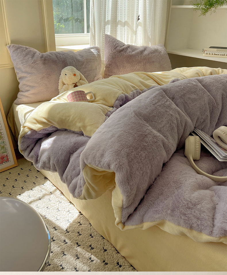 当前位置: 91家纺网 > 商品网购 > 床品套件 > 四件套 > 牛奶绒四件套 > 金爱家 2025新款全消光牛奶绒A类纯色獭兔毛绒立体四件套 混搭-紫黄