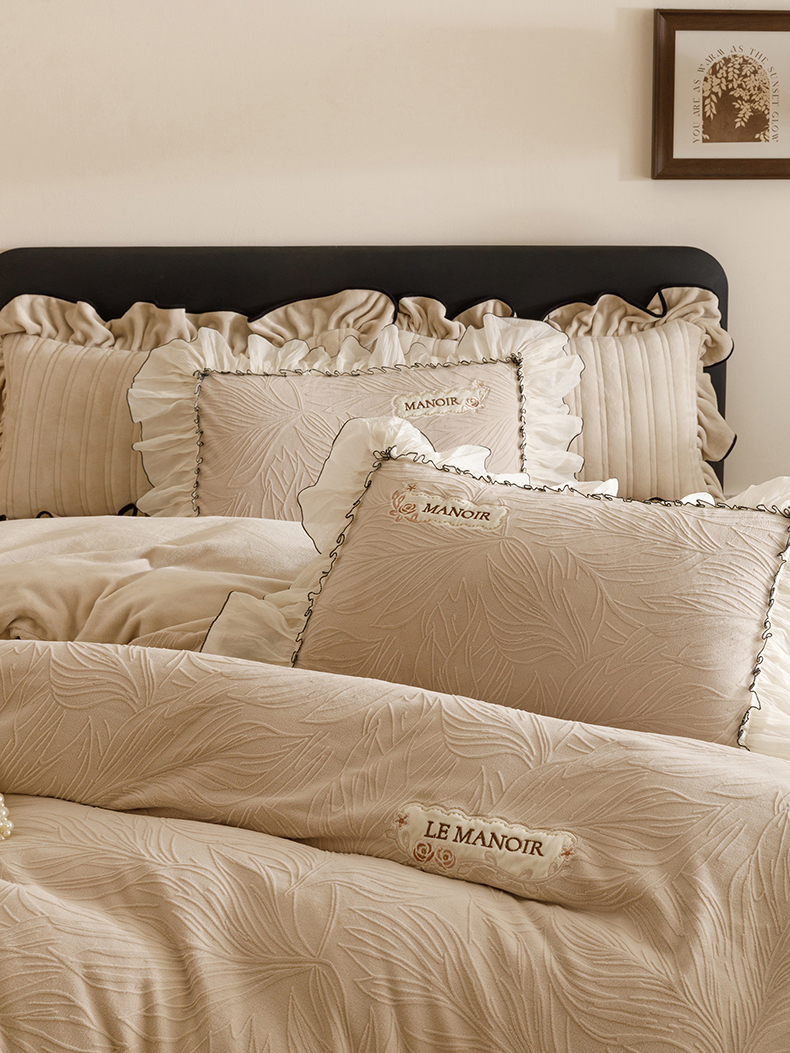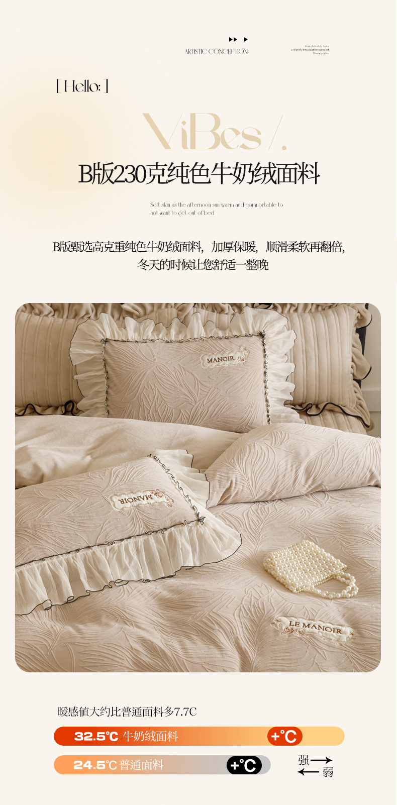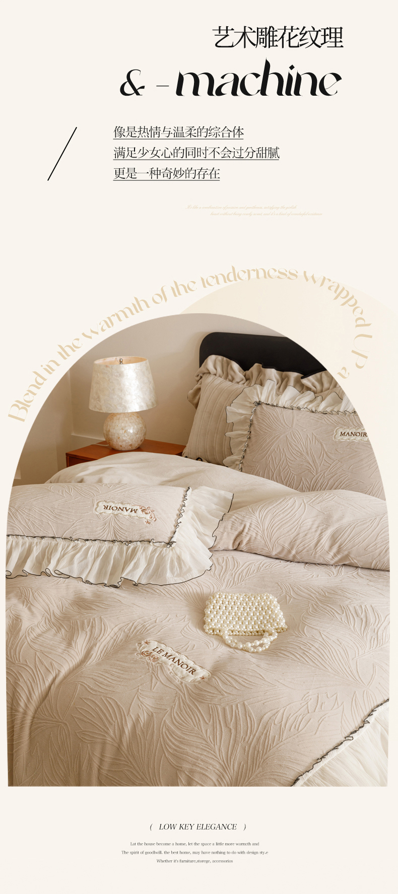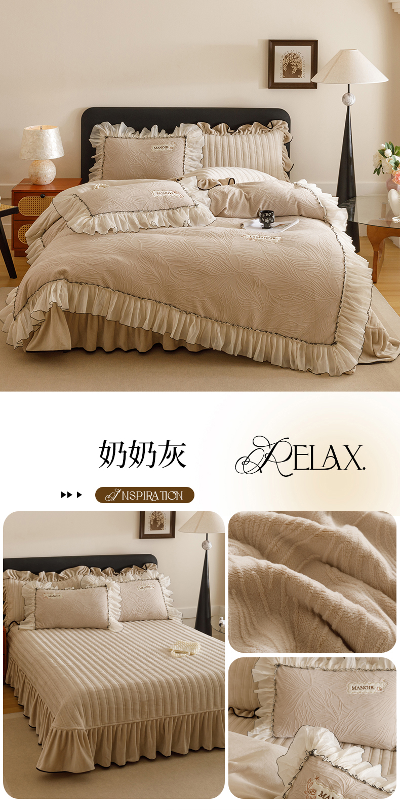 当前位置: 91家纺网 > 商品网购 > 床品套件 > 四件套 > 牛奶绒四件套 > 菊上家纺 2025新品雕花牛奶绒绣花床盖款四件套-伊莉莎系列 伊莉莎-奶奶灰色