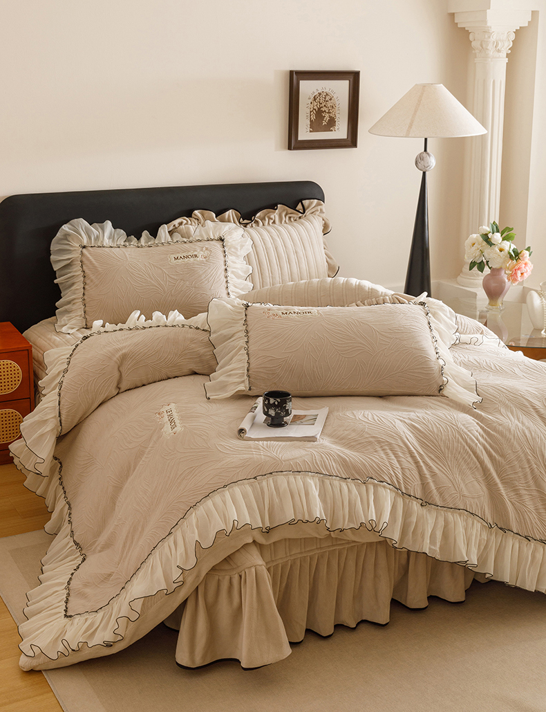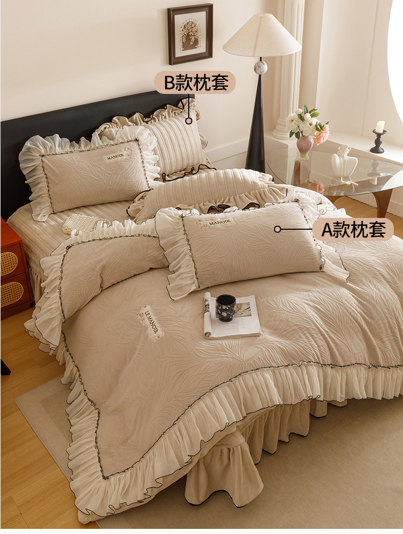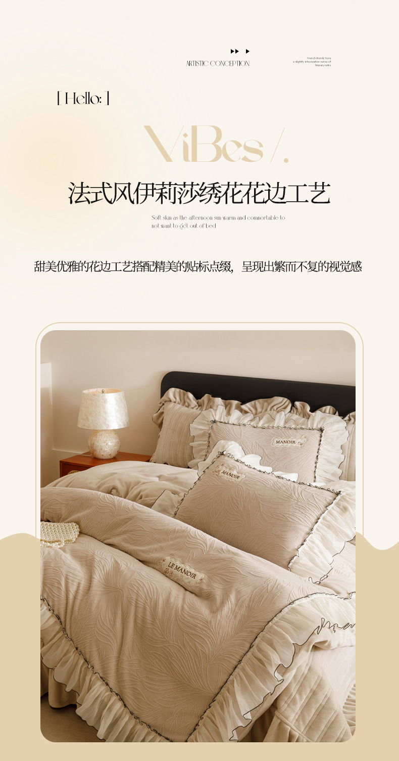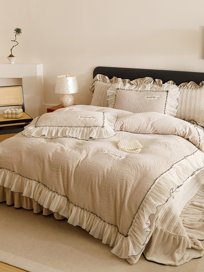 当前位置: 91家纺网 > 商品网购 > 床品套件 > 四件套 > 牛奶绒四件套 > 菊上家纺 2025新品雕花牛奶绒绣花床盖款四件套-伊莉莎系列 伊莉莎-奶奶灰色