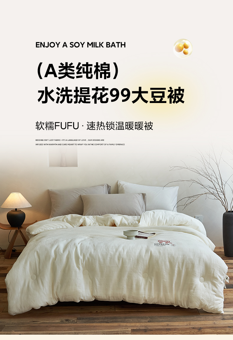 • 91家纺网 家纺一手货源 找家纺 子由家居 2025新款全棉纯棉水洗提花99大豆冬被被子被芯 纯棉99大豆被(简约风)