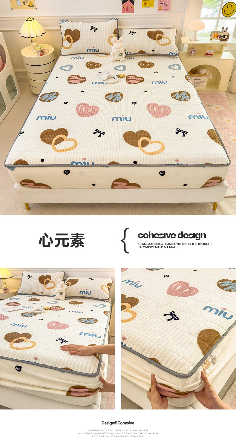 (总)摩妮卡 2025新款加厚保暖牛奶绒夹棉绣花床垫三件套,呆呆熊-蓝,呆呆熊-黄,呆呆熊-咖,Kitty猫-白,Kitty猫-粉,Kitty猫-紫