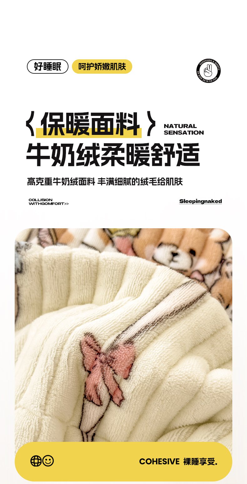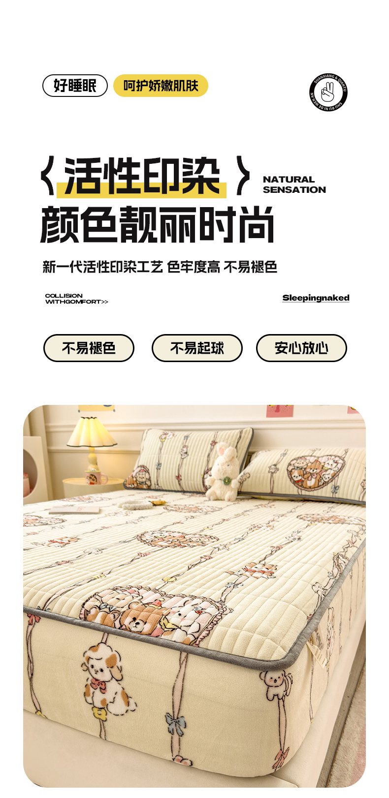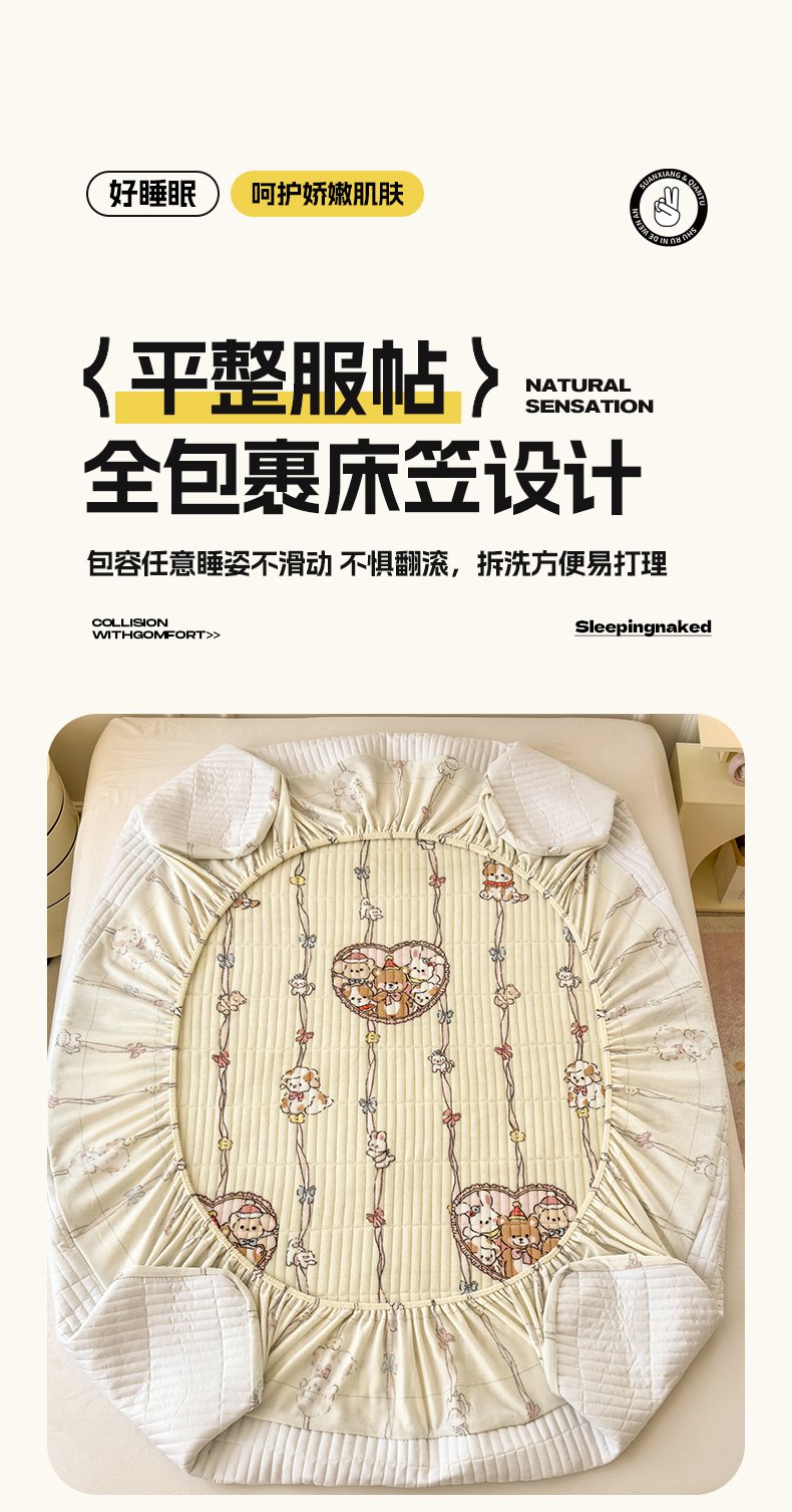 • 91家纺网 家纺一手货源 找家纺 摩妮卡 2025新款小清新系列印花牛奶绒夹棉床笠三件套 童趣乐园