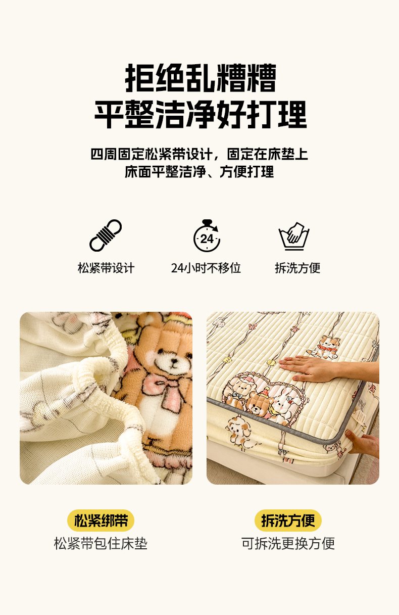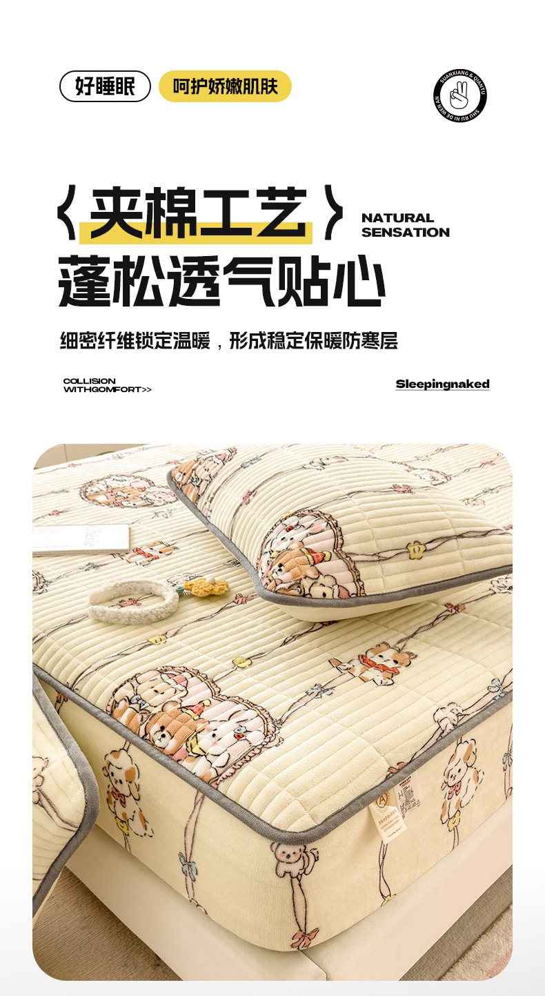 (总)摩妮卡 2025新款加厚保暖牛奶绒夹棉绣花床垫三件套,呆呆熊-蓝,呆呆熊-黄,呆呆熊-咖,Kitty猫-白,Kitty猫-粉,Kitty猫-紫
