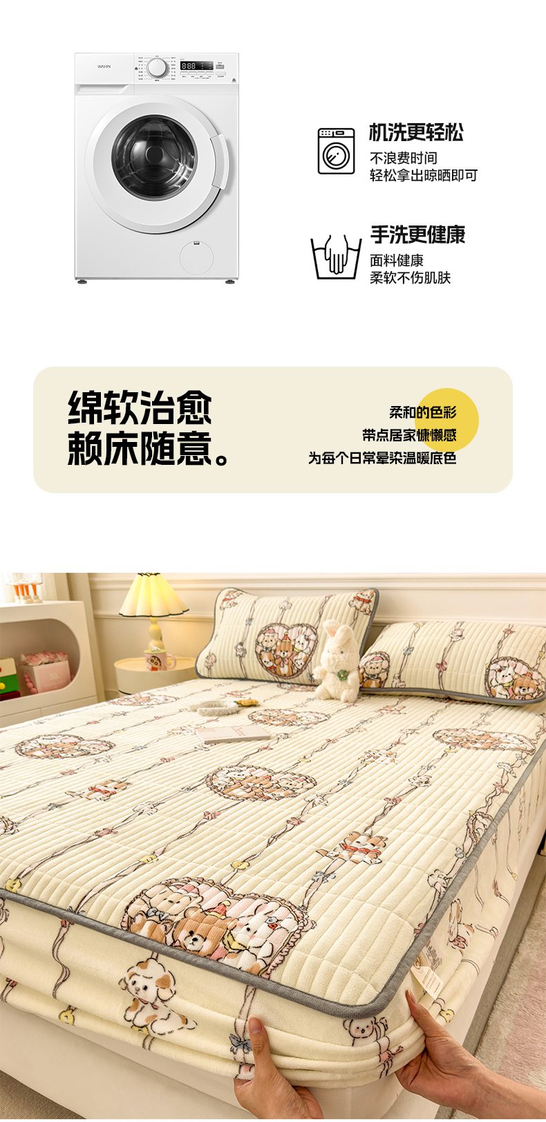 • 91家纺网 家纺一手货源 找家纺 (总)摩妮卡 2025新款牛奶绒贴布绣绒床笠保护床垫三件套,采花的小兔,免兔的日常,内向的小兔,盛日庆祝,甜点魔法师,星星餐点