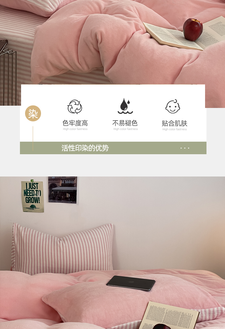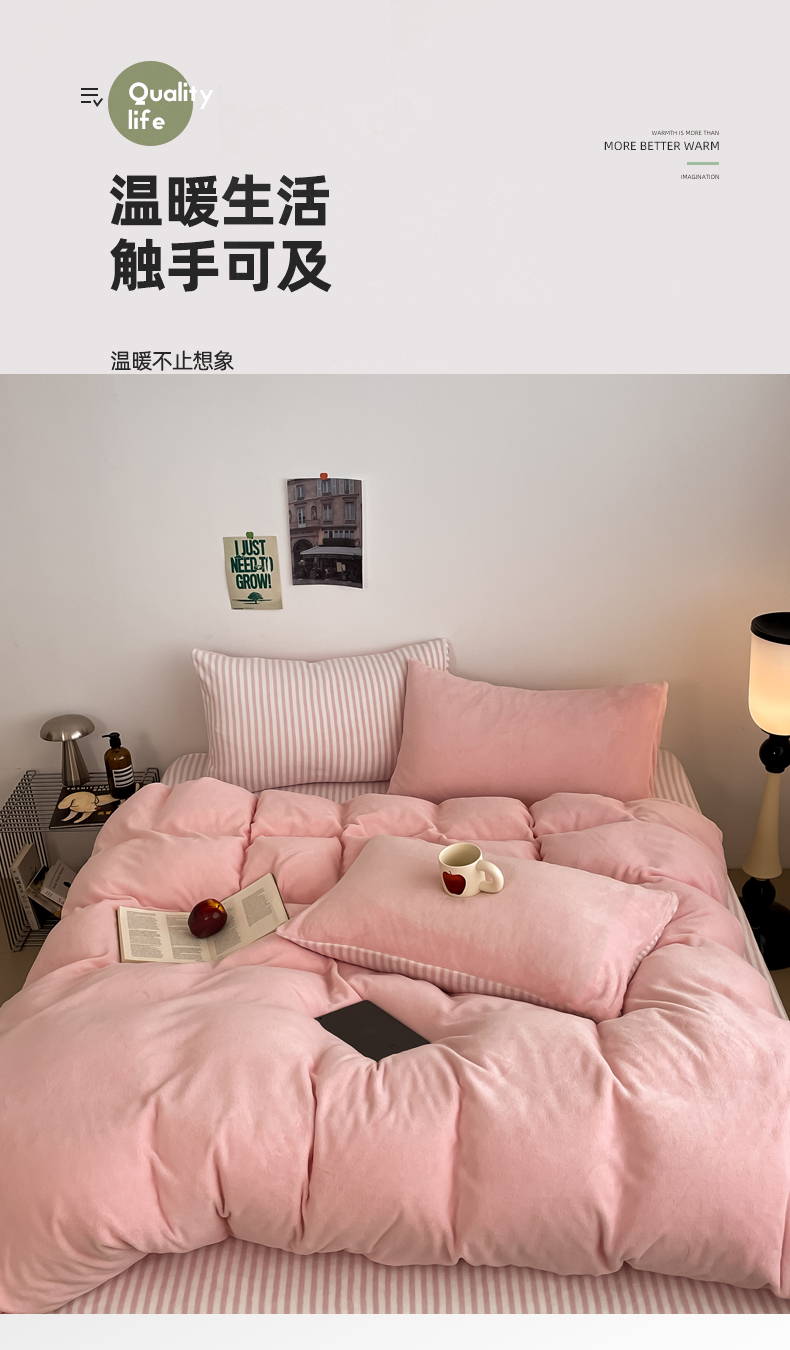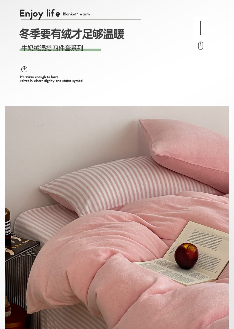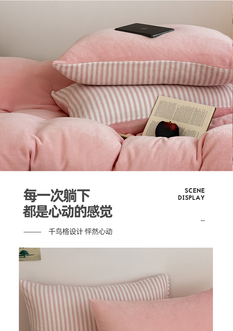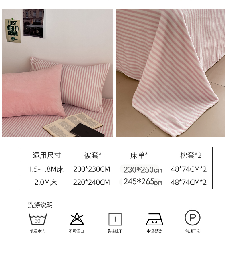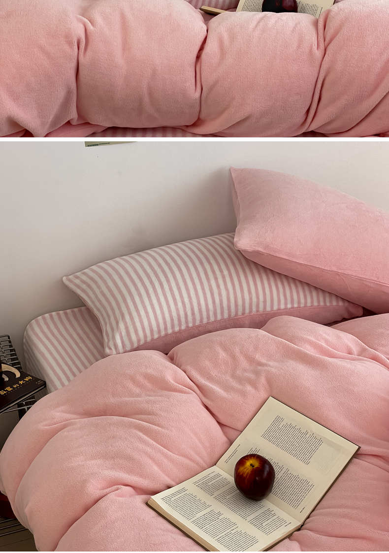 当前位置: 91家纺网 > 商品网购 > 床品套件 > 四件套 > 其它四件套 > 三朵家纺 2025新款法莱绒混搭四件套 粉玉+细条