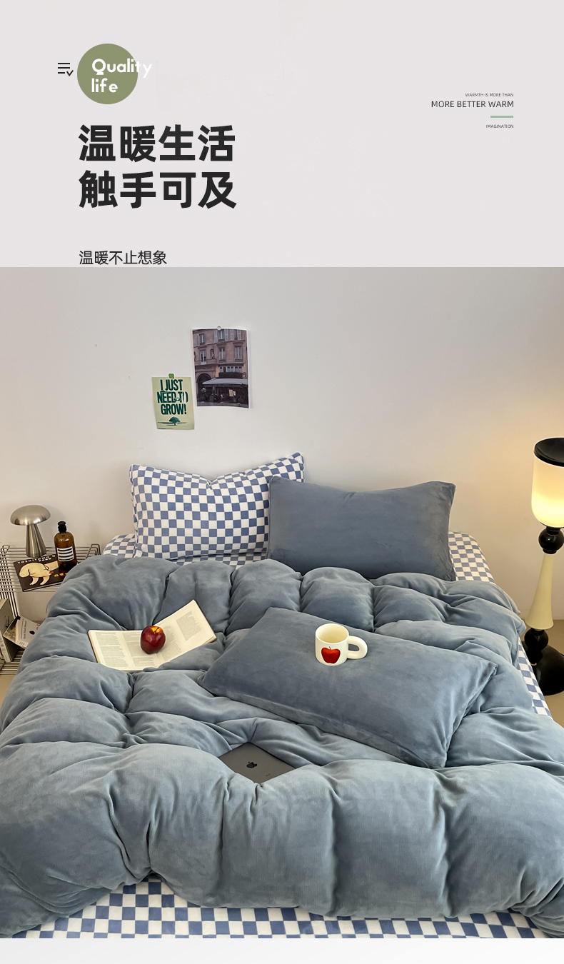 当前位置: 91家纺网 > 商品网购 > 床品套件 > 四件套 > 其它四件套 > 三朵家纺 2025新款法莱绒混搭四件套 蔚蓝+蓝格