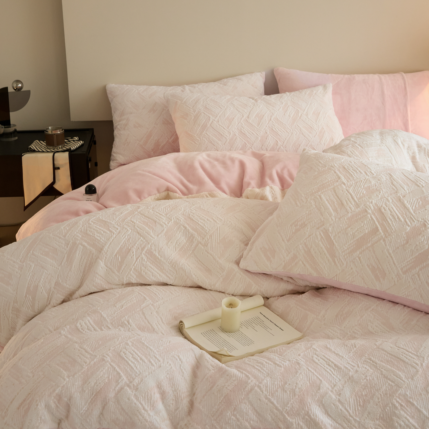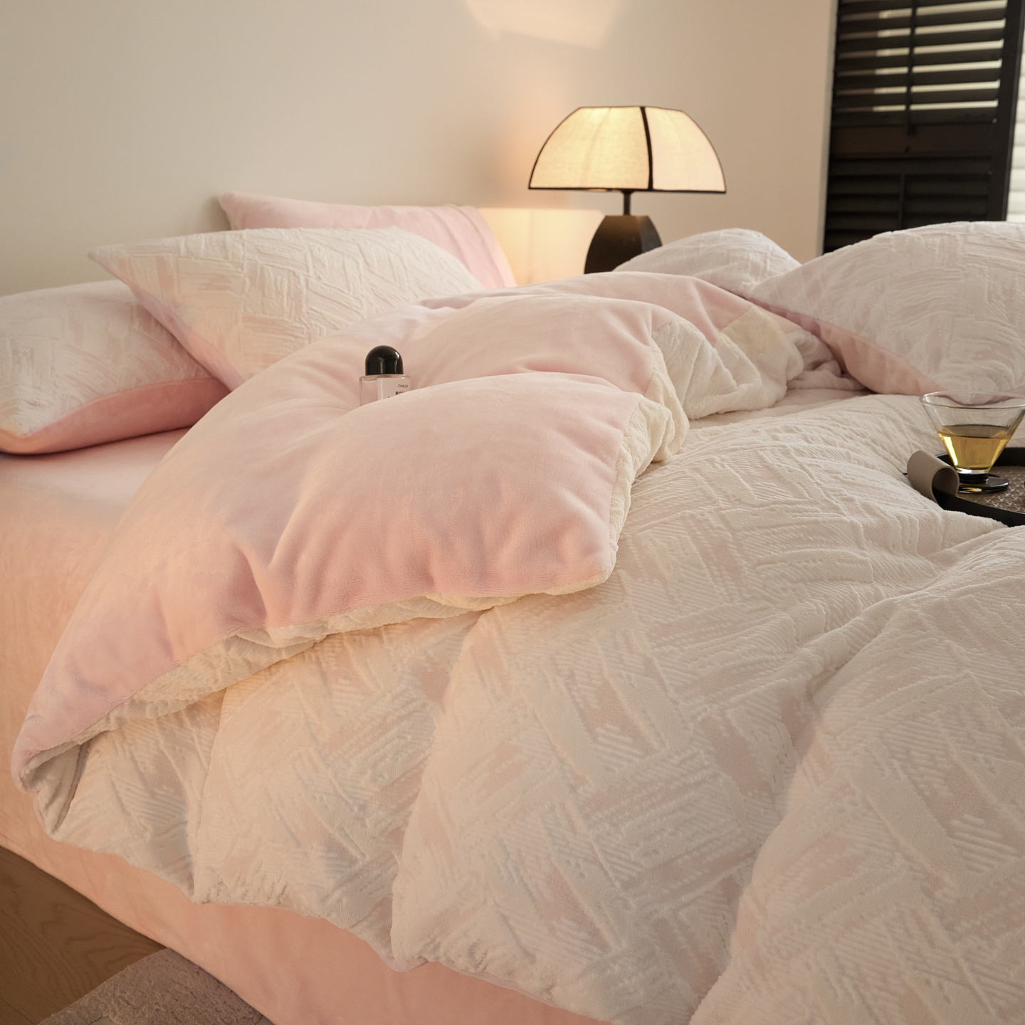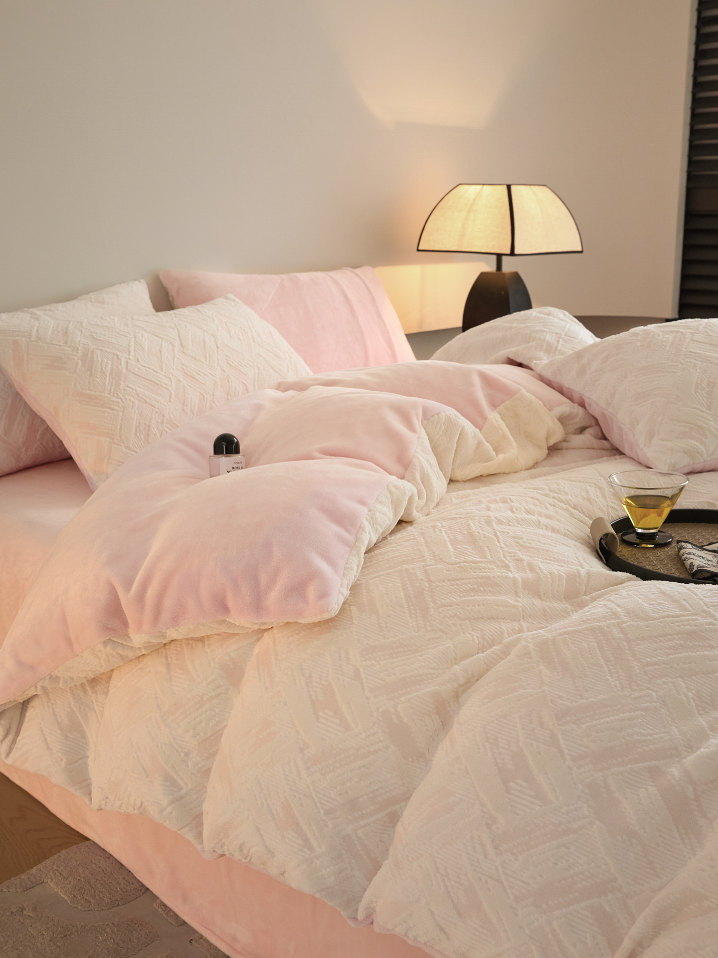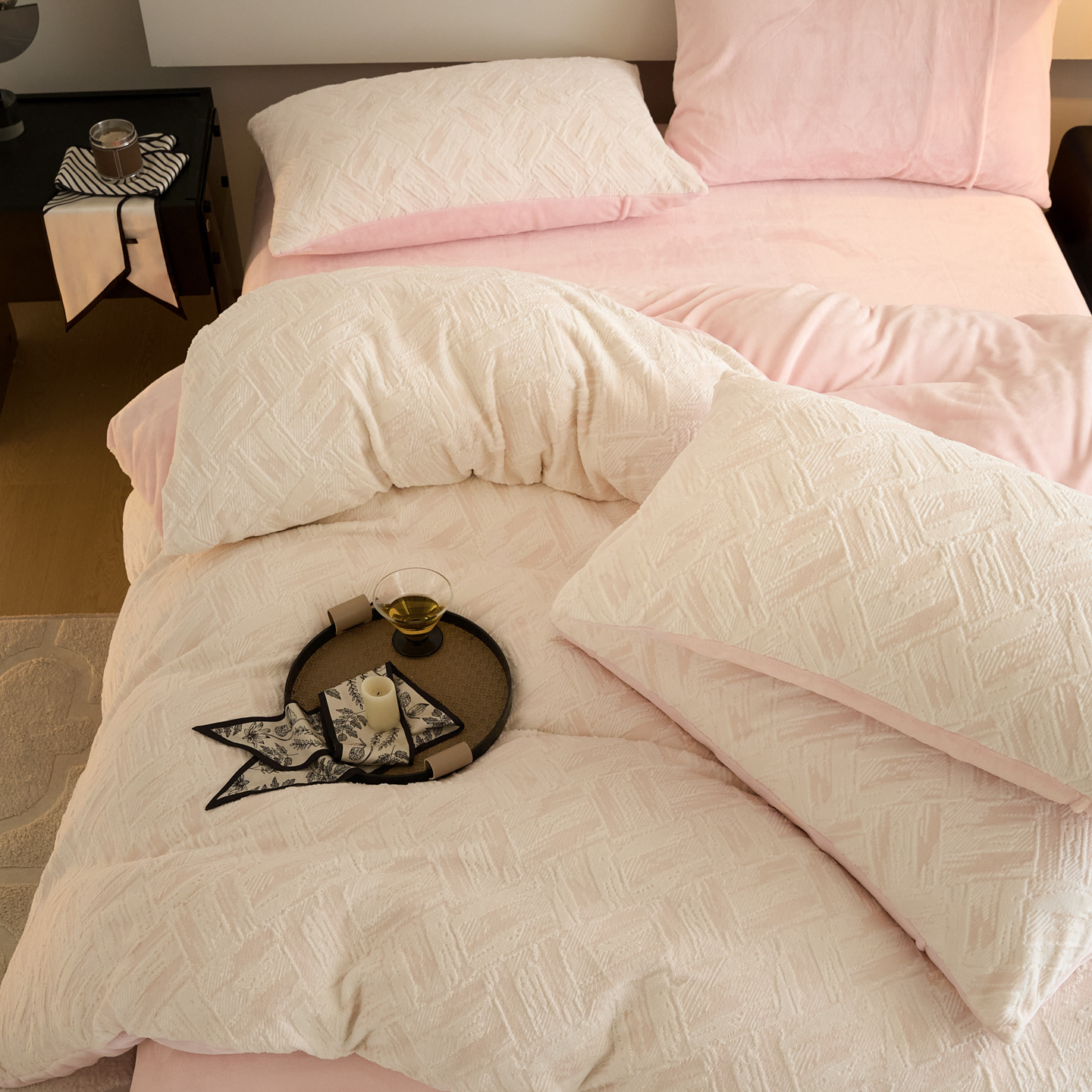 当前位置: 91家纺网 > 商品网购 > 床品套件 > 四件套 > 牛奶绒四件套 > 言一 2025新款A类全消光超柔260G保暖加厚立体雕花牛奶绒四件套 霜语-粉