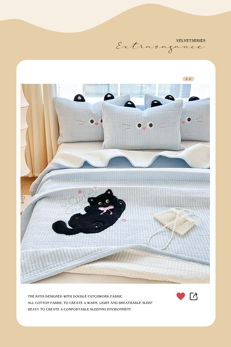 曼町家居 2025新款秋冬加厚牛奶绒防滑单床盖系列 尤米-天空蓝