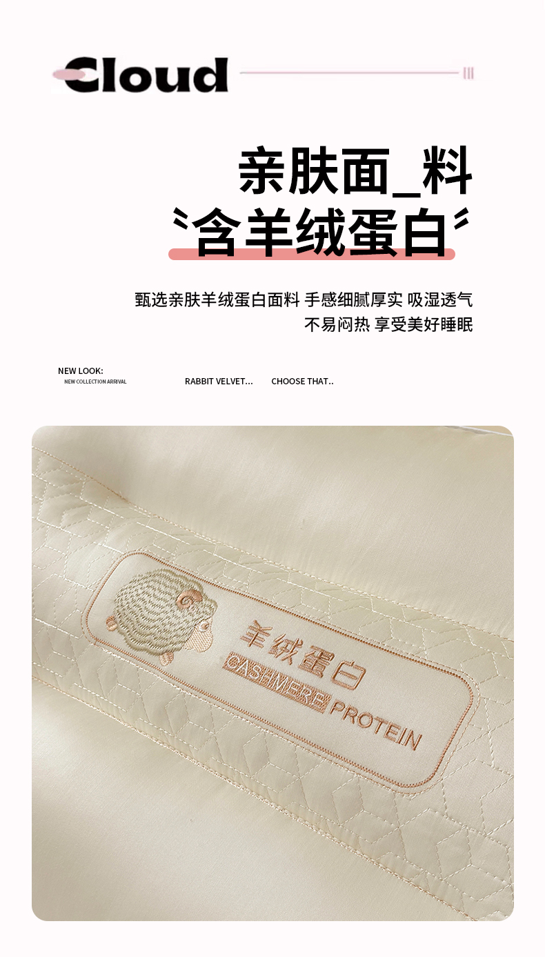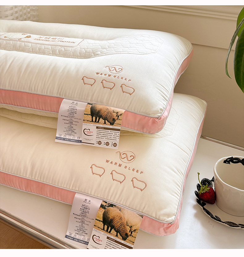 青泽家纺 2025新款羊绒蛋白枕头枕芯 羊绒蛋白枕芯 低枕一只装