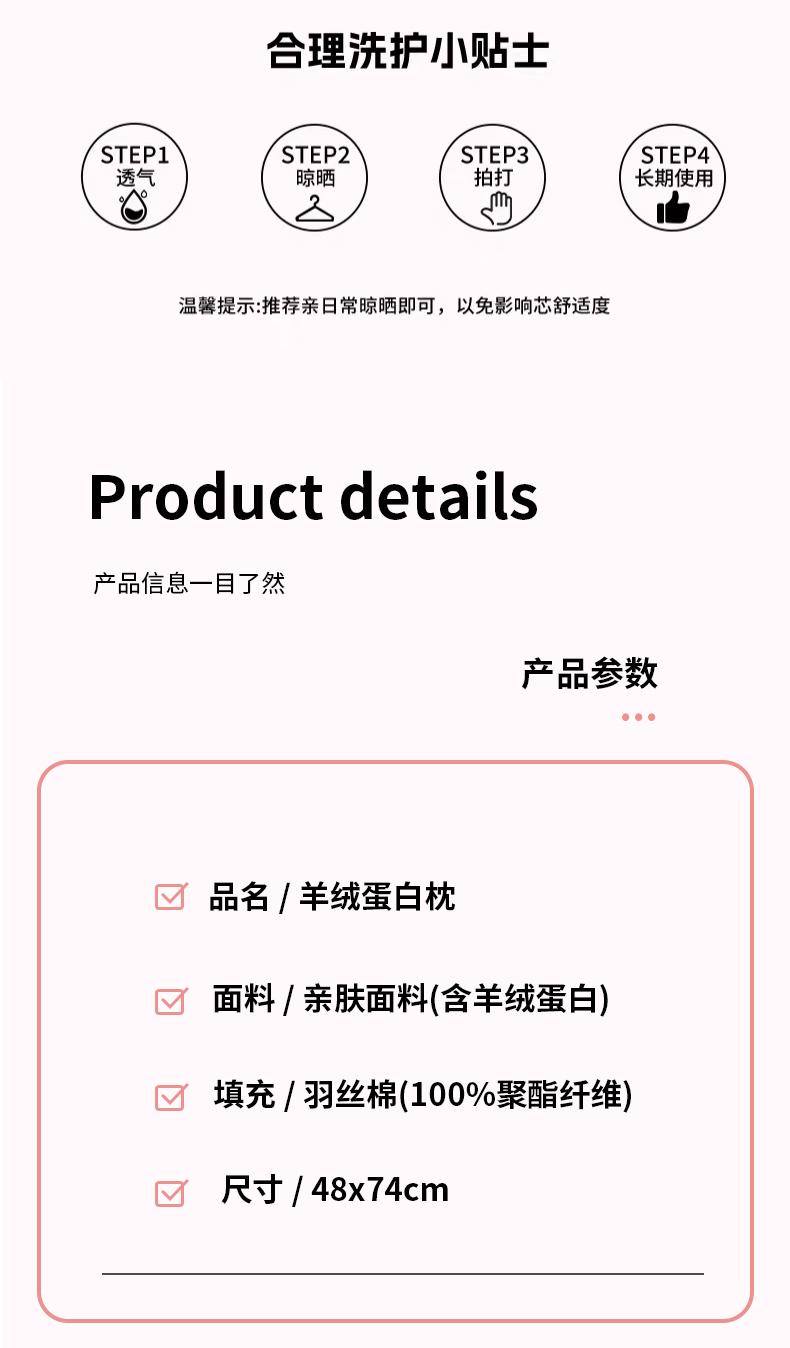 商品名称:青泽家纺 2025新款羊绒蛋白枕头枕芯 羊绒蛋白枕芯 低枕一只装