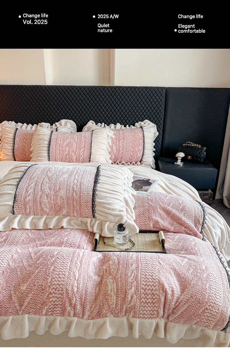 (总)极简 2025新款立体雕花牛奶绒荷叶边四件套