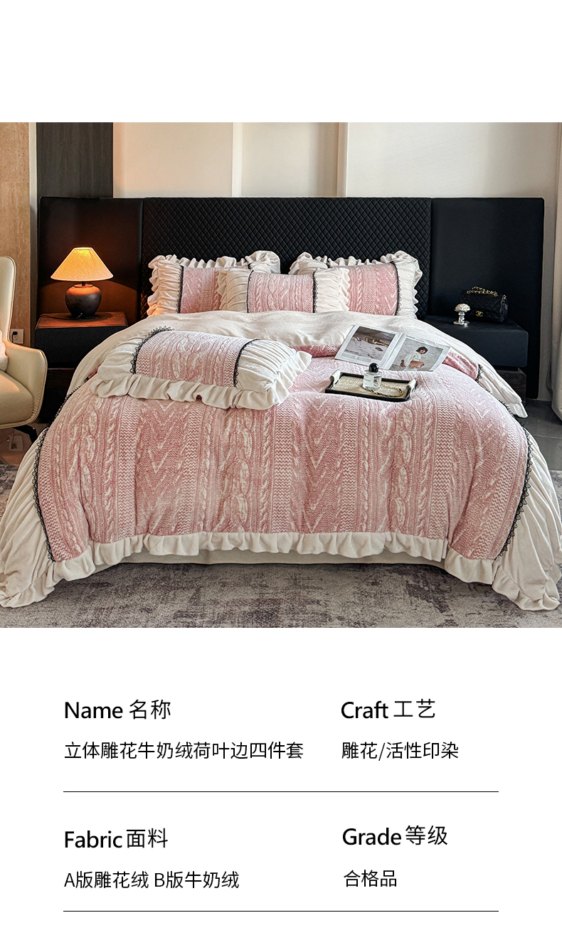 商品名称:(总)极简 2025新款立体雕花牛奶绒荷叶边四件套