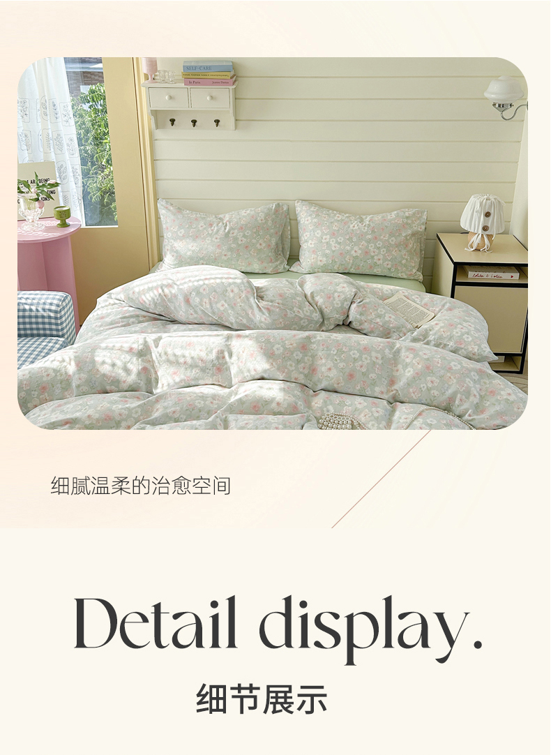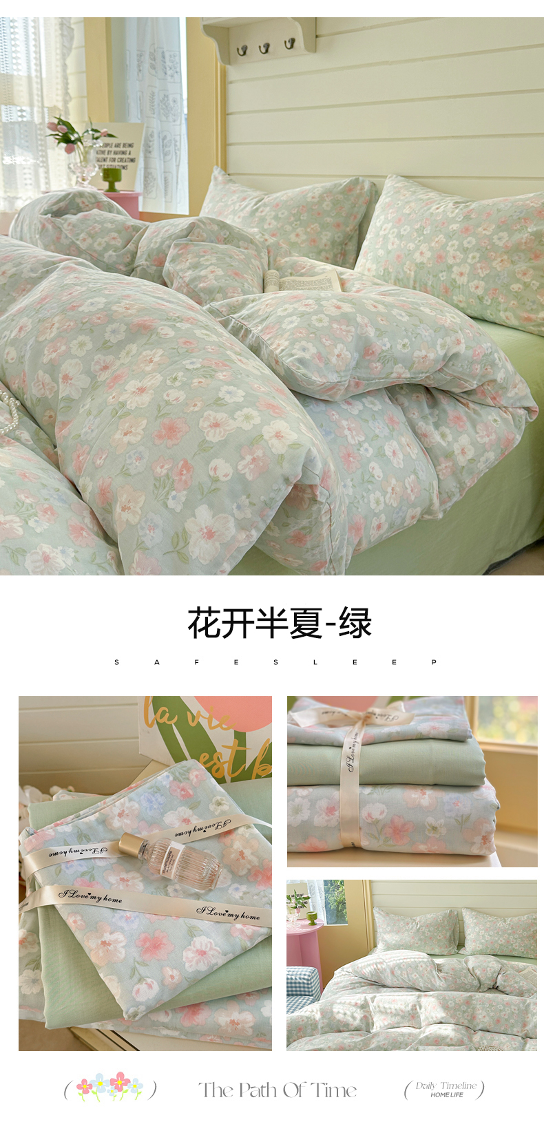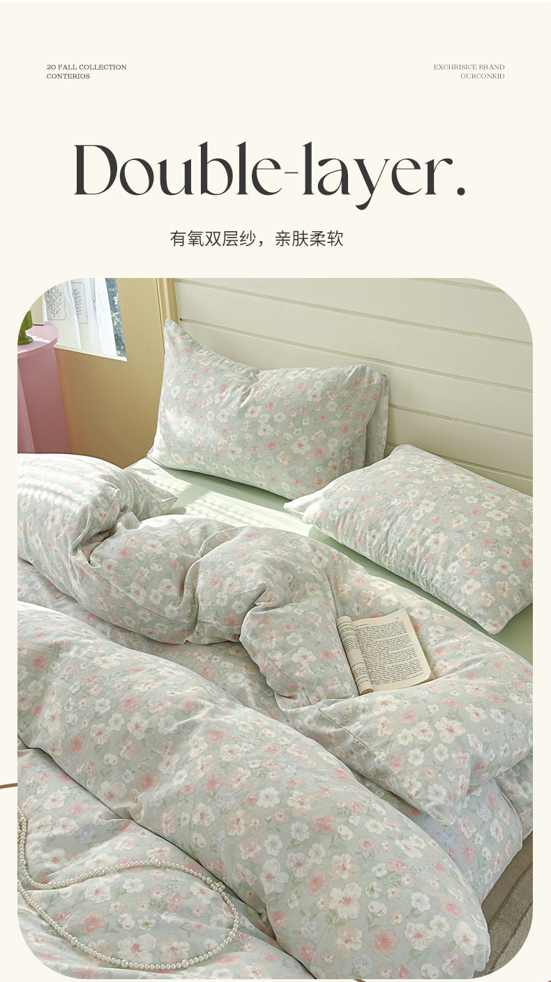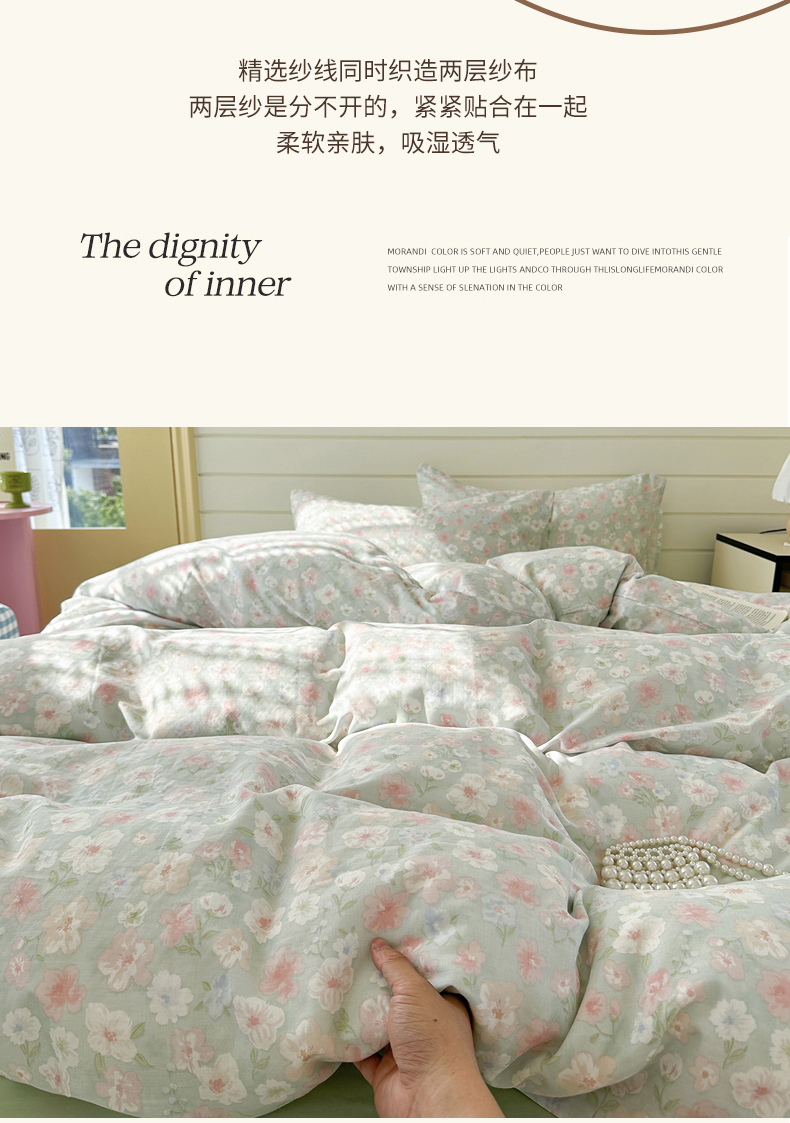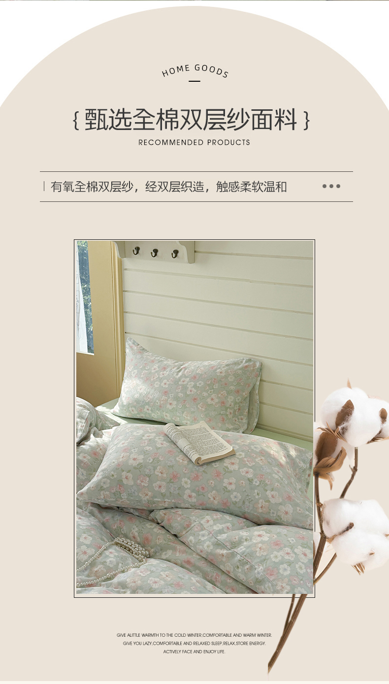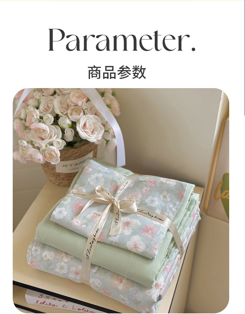 当前位置: 91家纺网 > 商品网购 > 床品套件 > 四件套 > 全棉普通四件套 > 麦伦 2025年新品 --全棉有氧双层纱简约款系列 花开半夏 绿