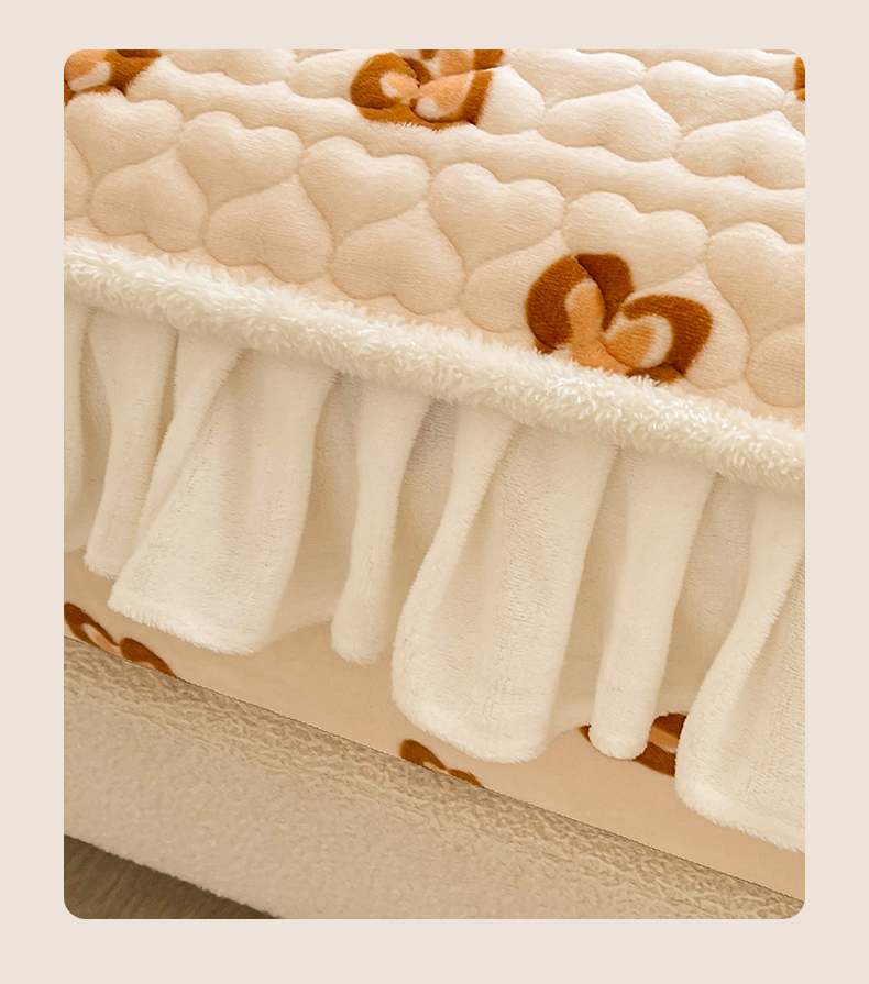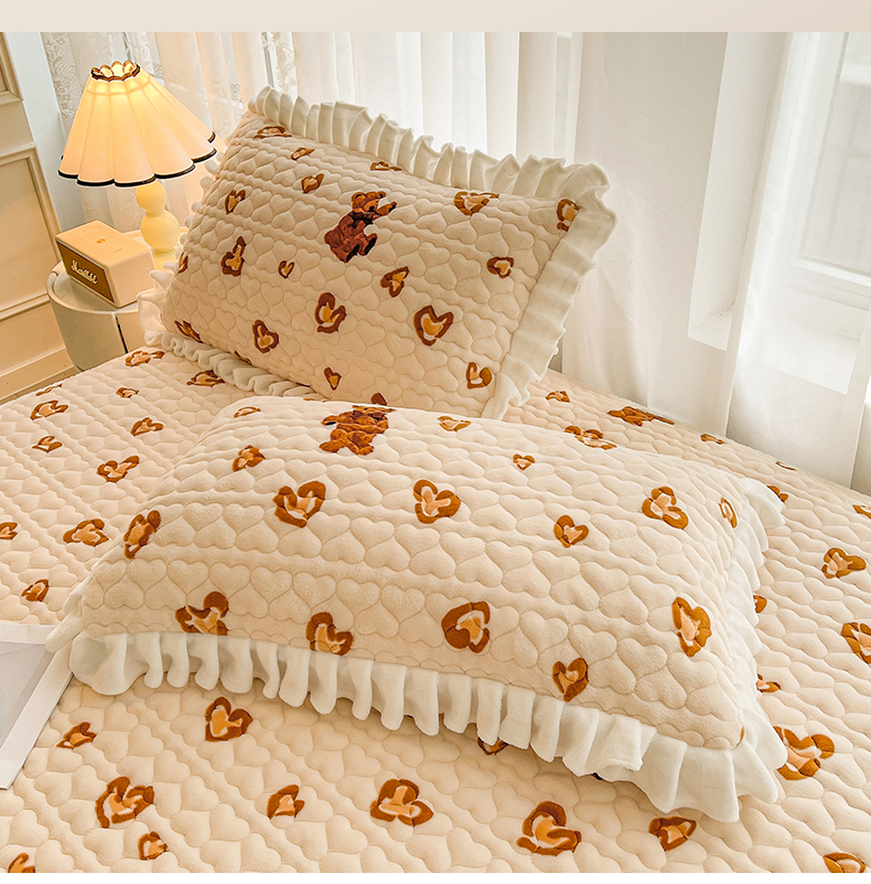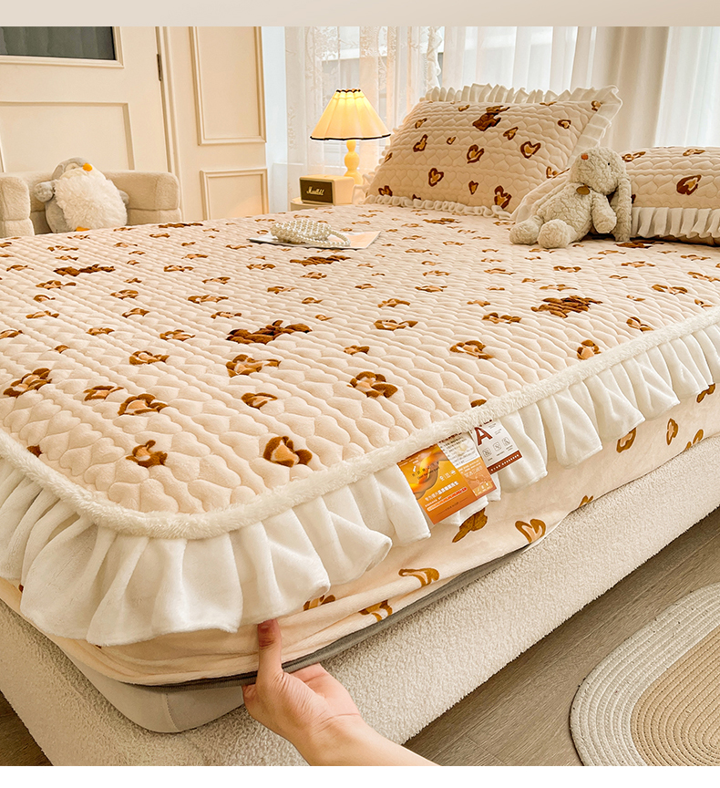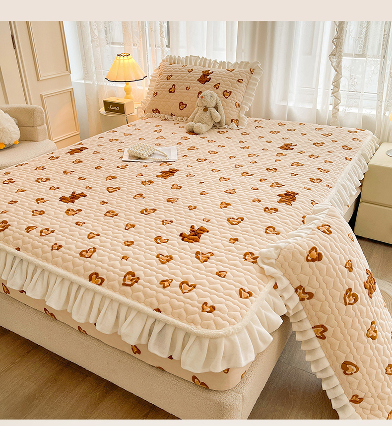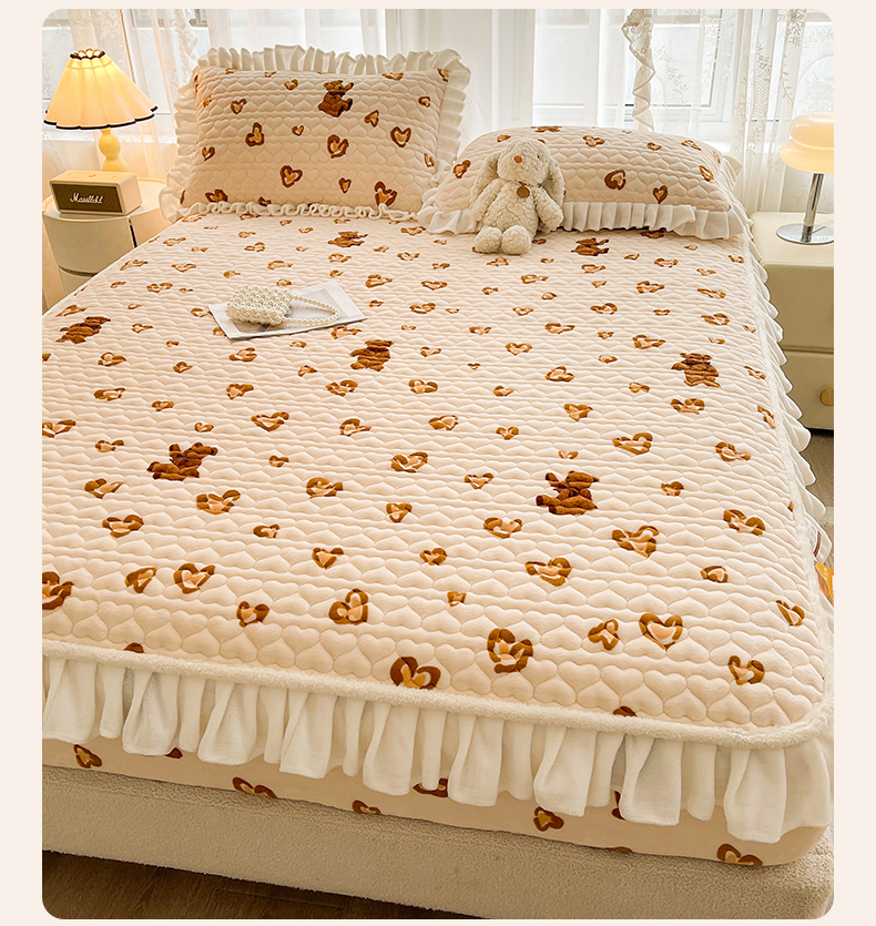 雯豆家纺 2025新款牛奶绒花边床笠单床笠单品床笠单件床笠 牛奶绒花边床笠-亲子熊