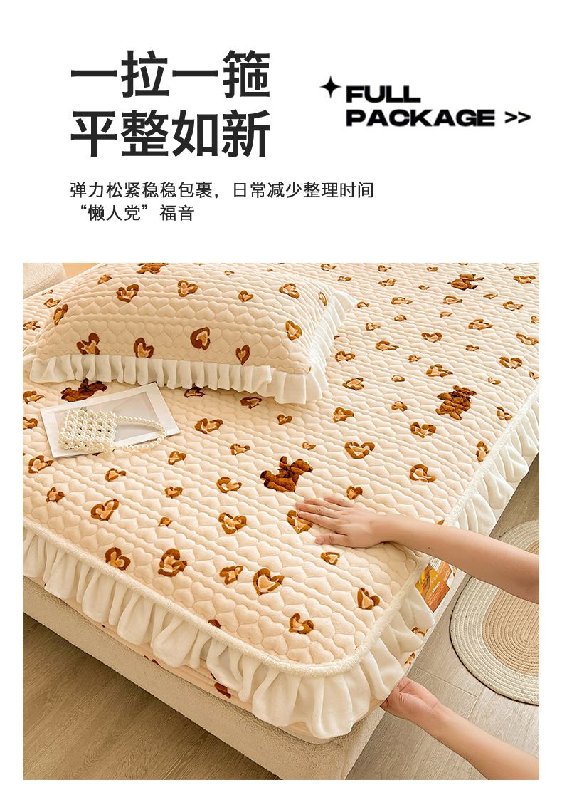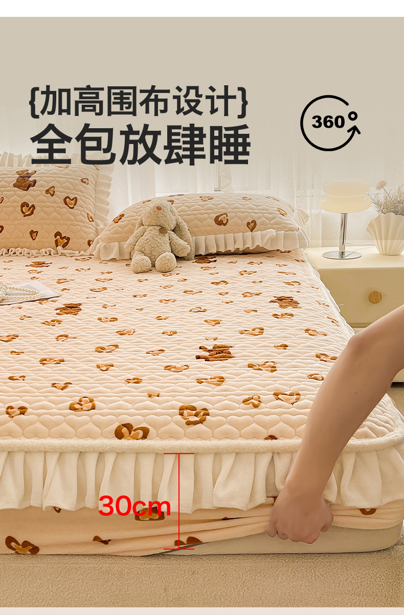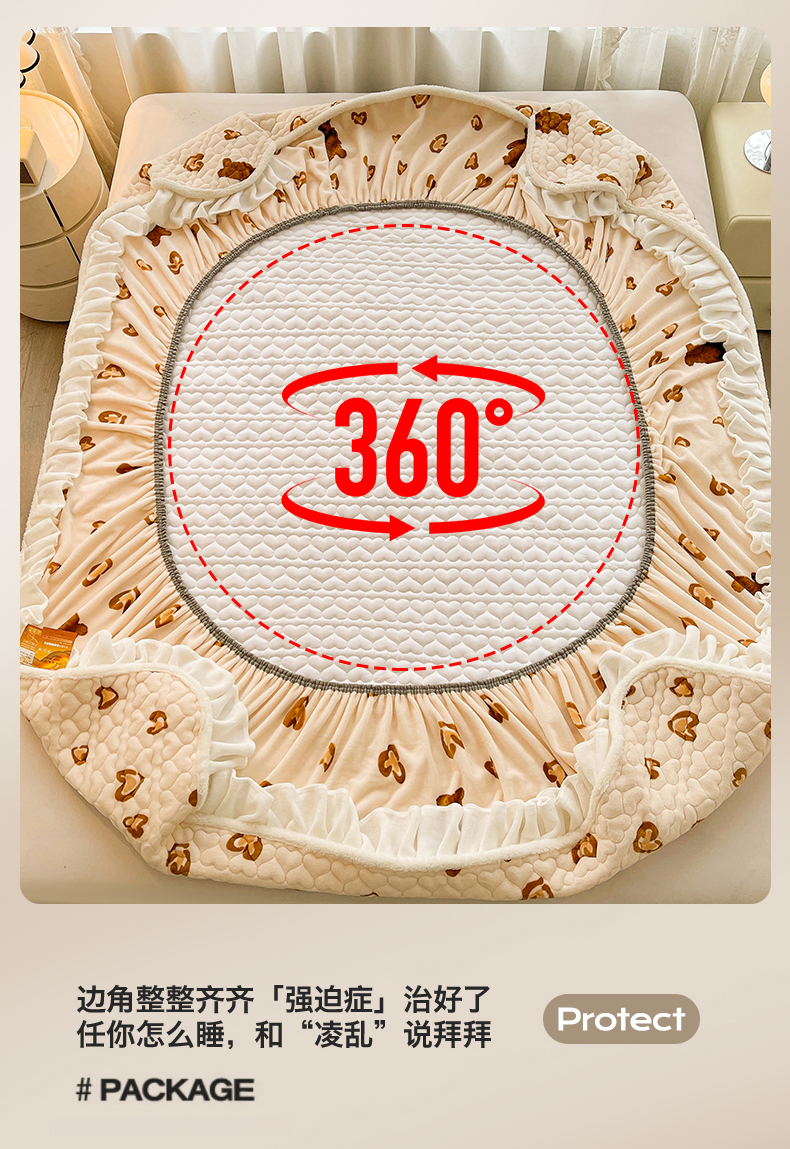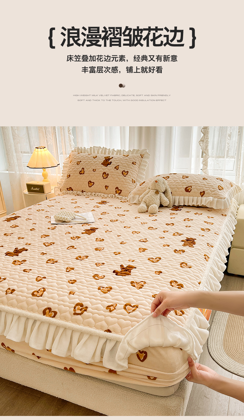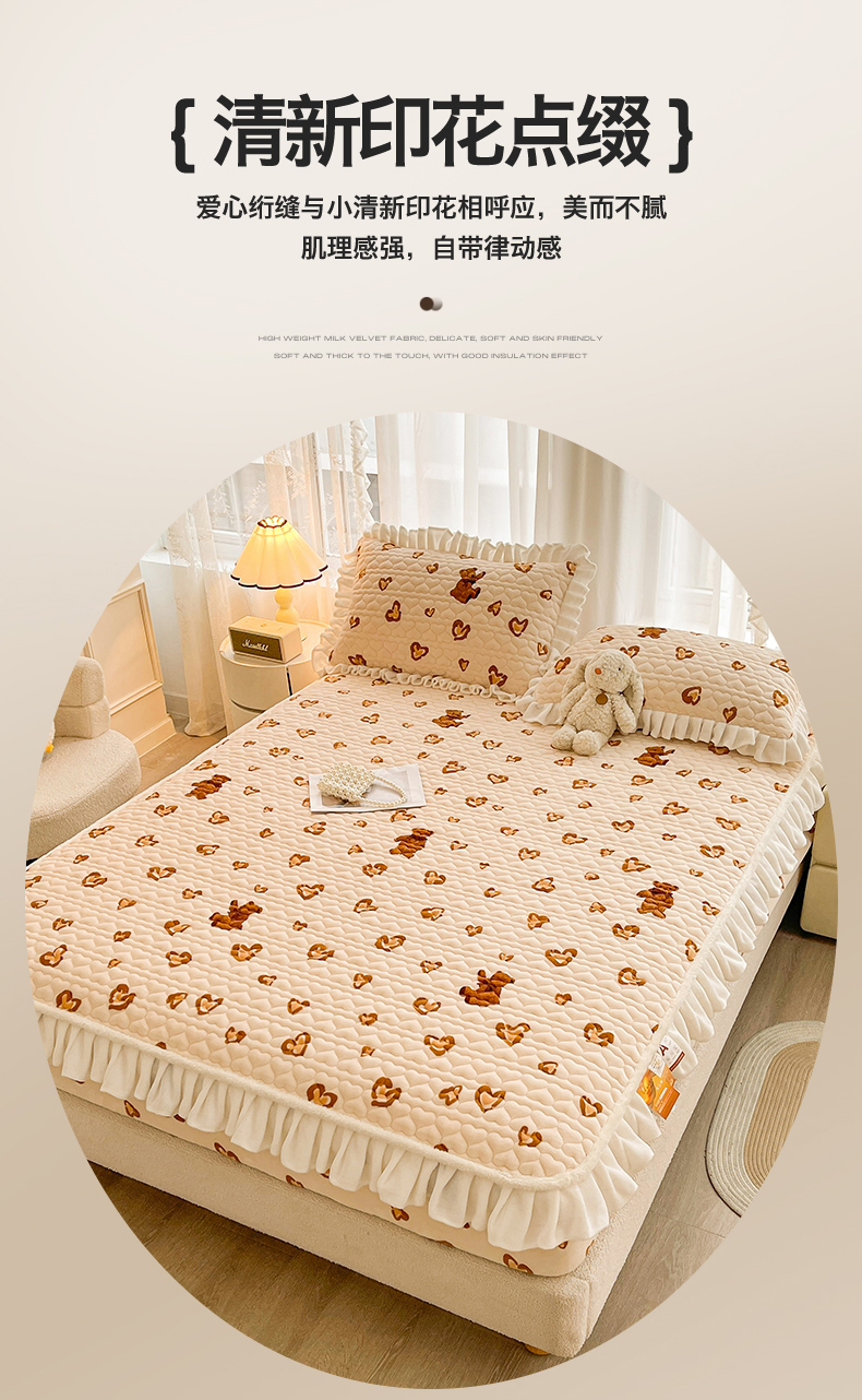 • 91家纺网 家纺一手货源 找家纺 雯豆家纺 2025新款牛奶绒花边床笠单床笠单品床笠单件床笠 牛奶绒花边床笠-亲子熊