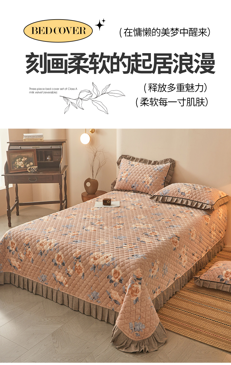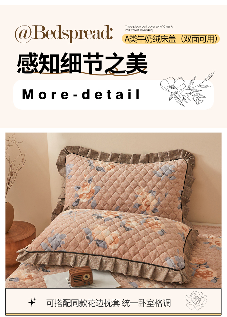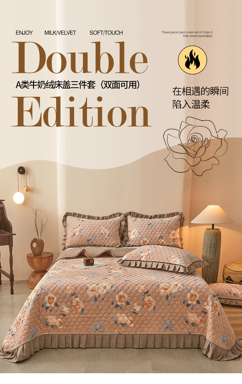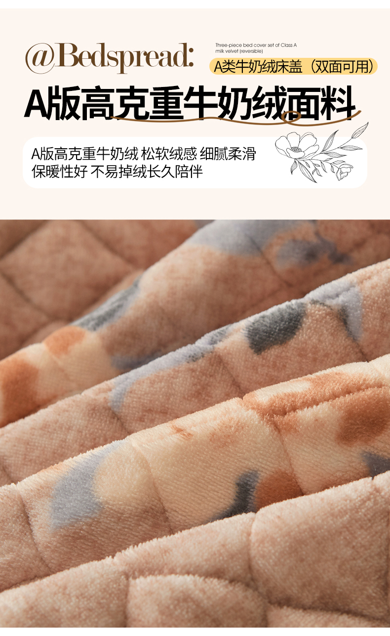 当前位置: 91家纺网 > 商品网购 > 床品套件 > 三件套 > 宜凡家纺 2025新款牛奶绒床盖三件套(双面可用) 秋恋花