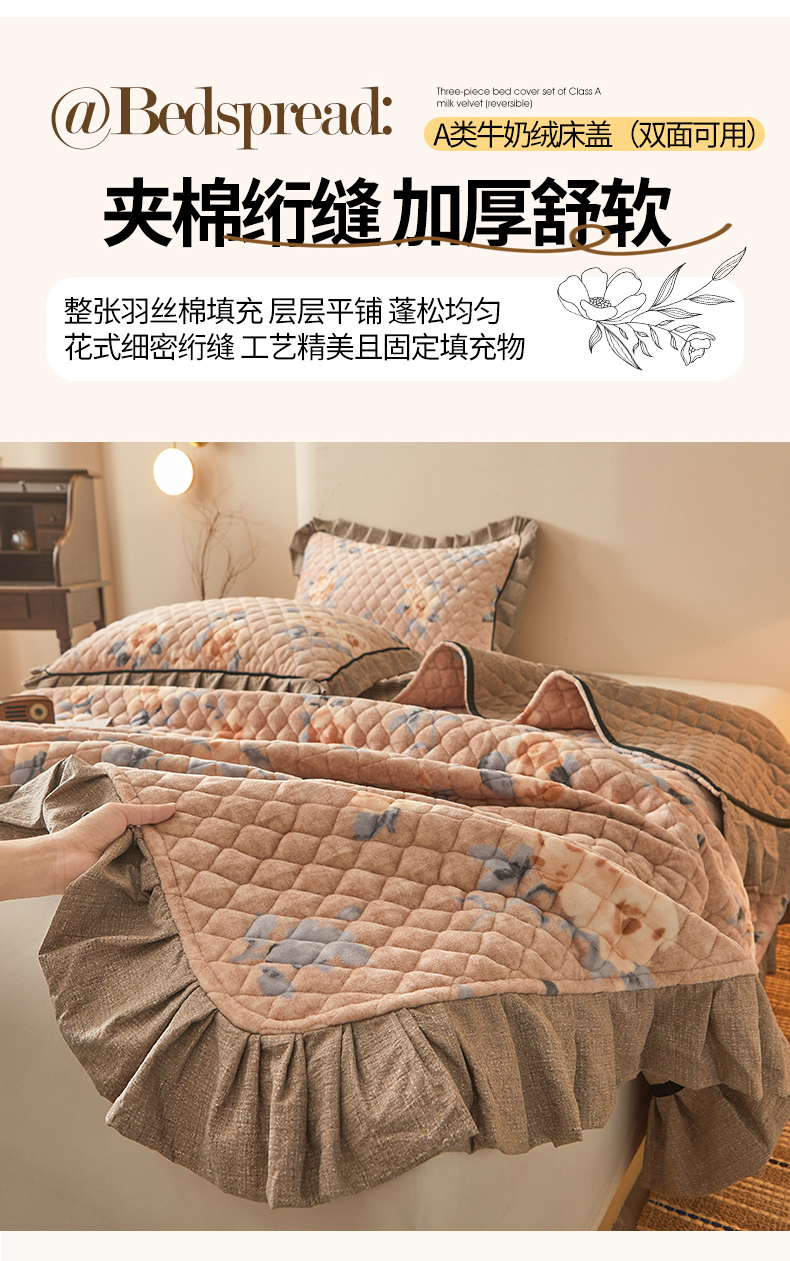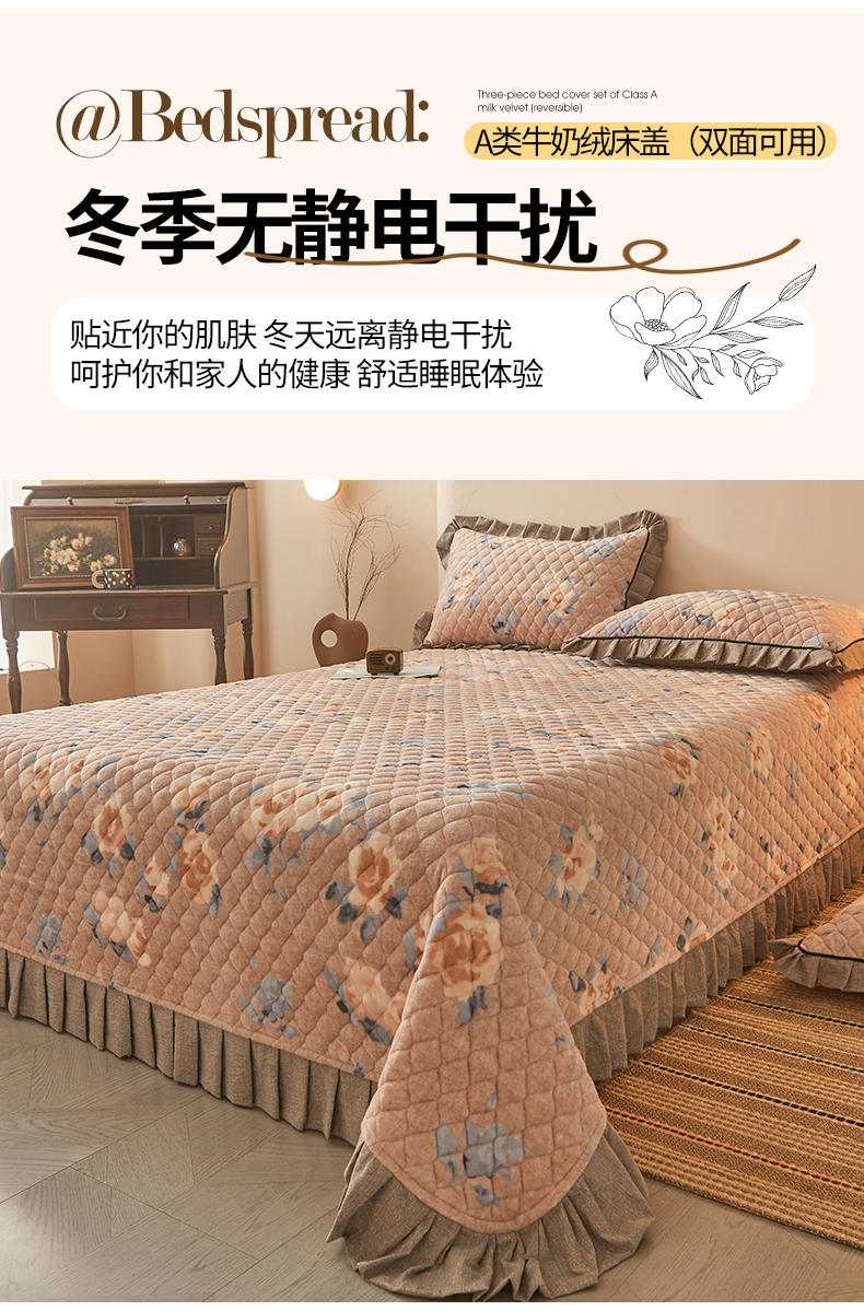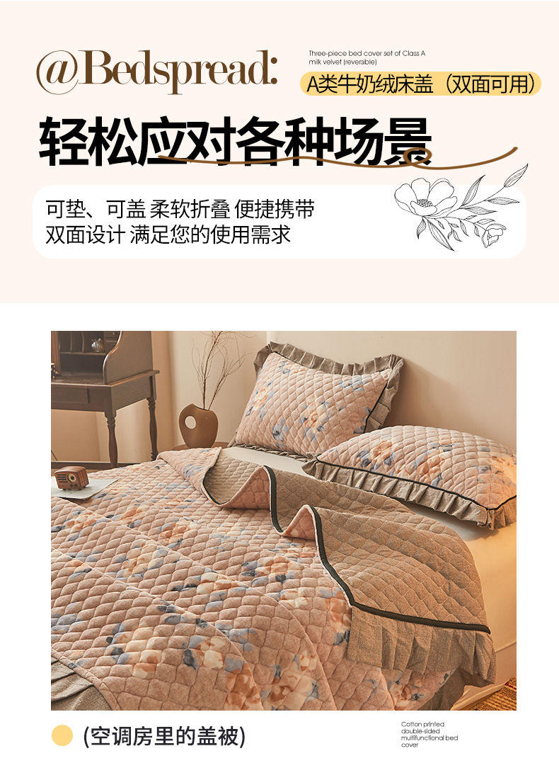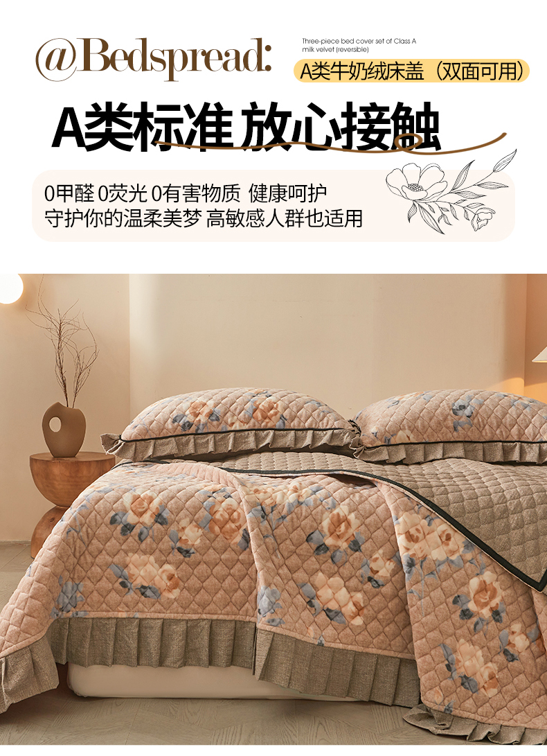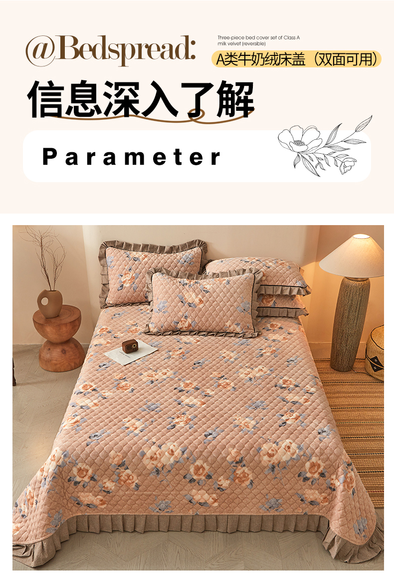当前位置: 91家纺网 > 商品网购 > 床品套件 > 三件套 > 宜凡家纺 2025新款牛奶绒床盖三件套(双面可用) 秋恋花