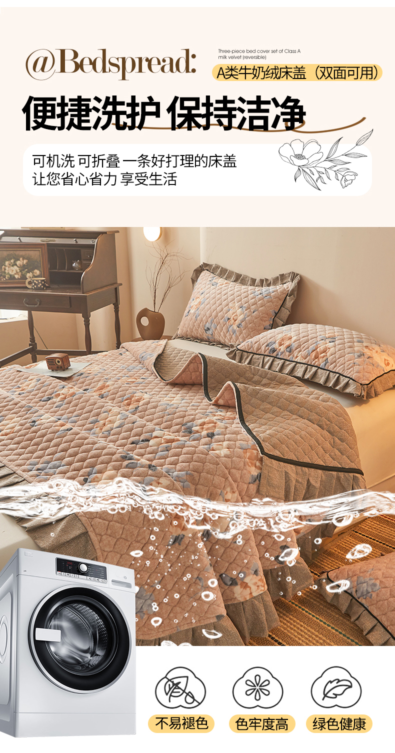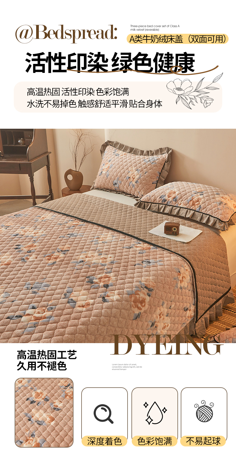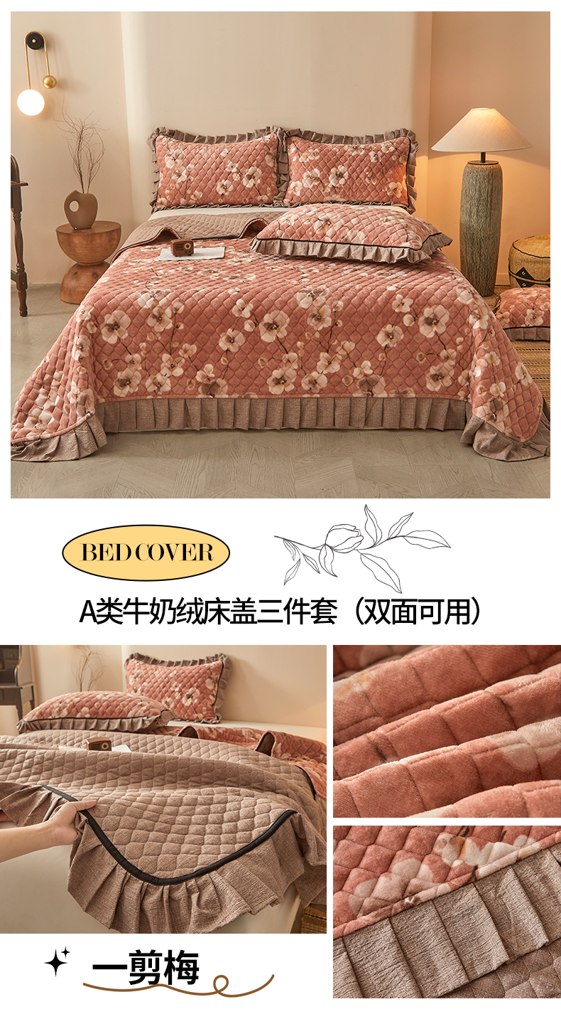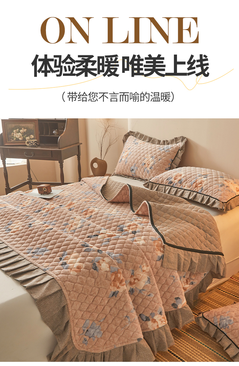 当前位置: 91家纺网 > 商品网购 > 床品套件 > 三件套 > 宜凡家纺 2025新款牛奶绒床盖三件套(双面可用) 秋恋花