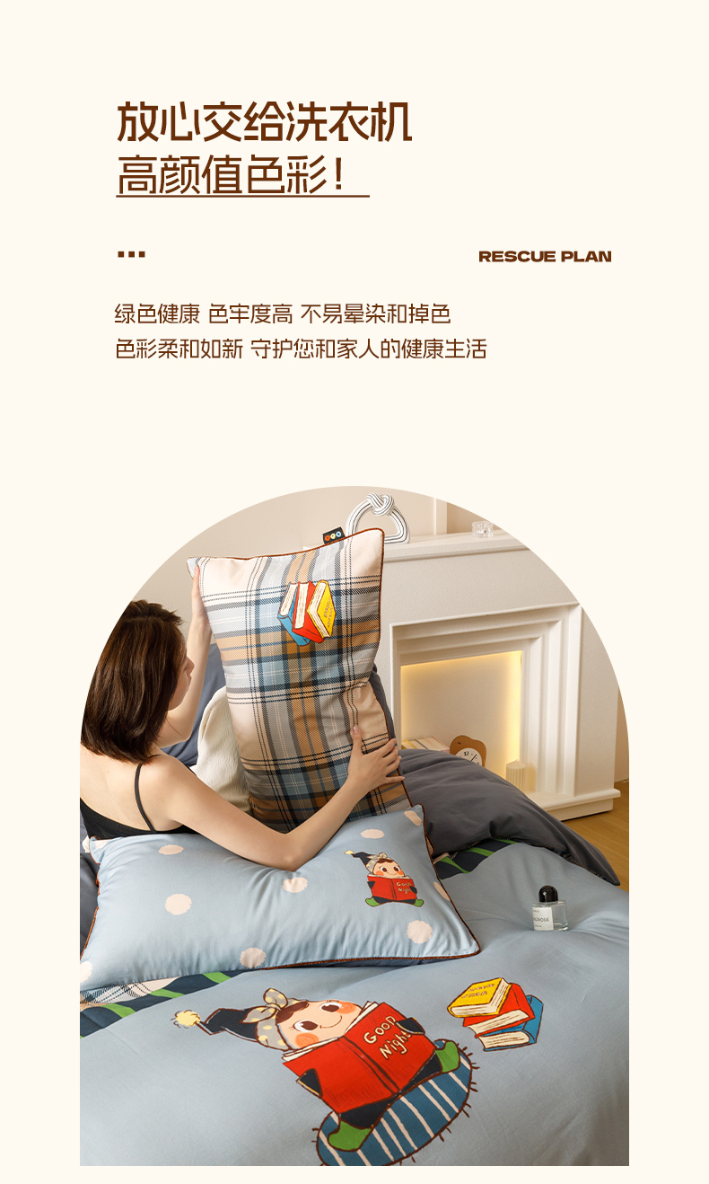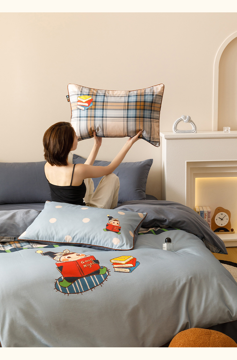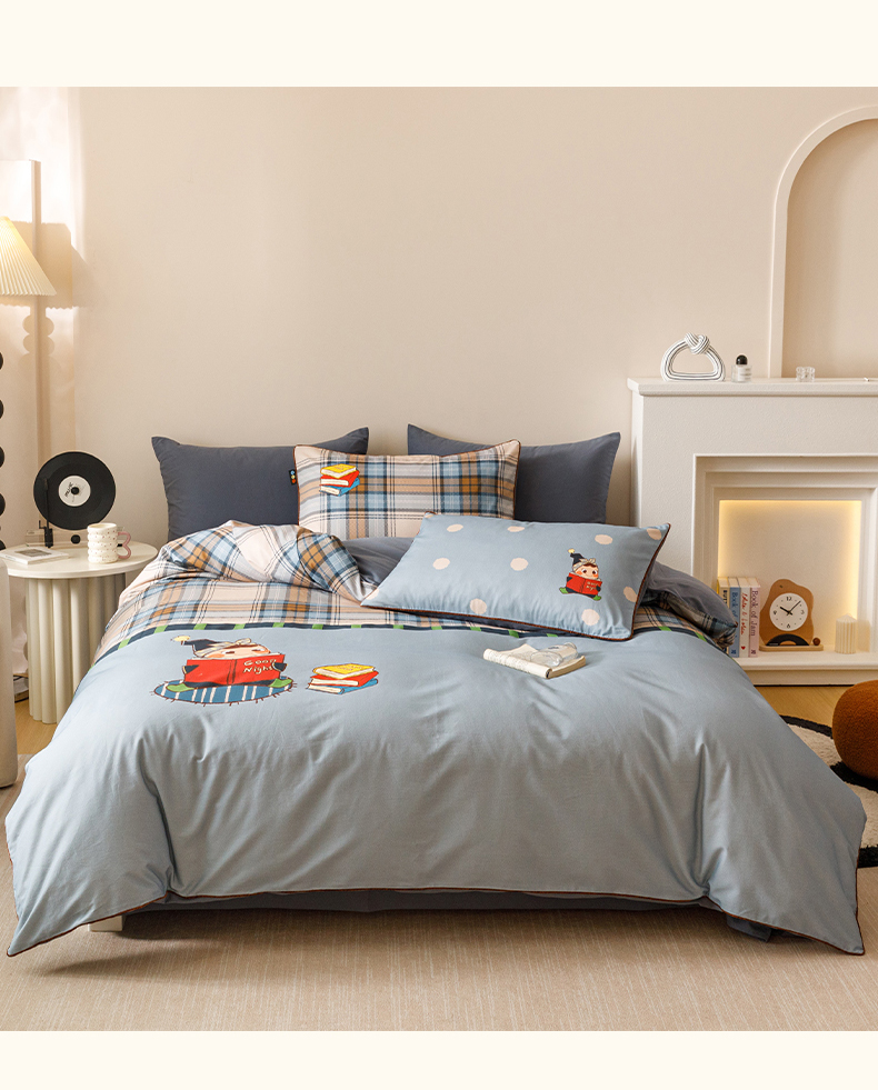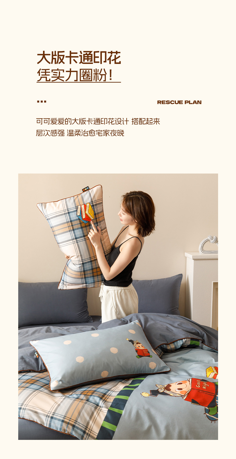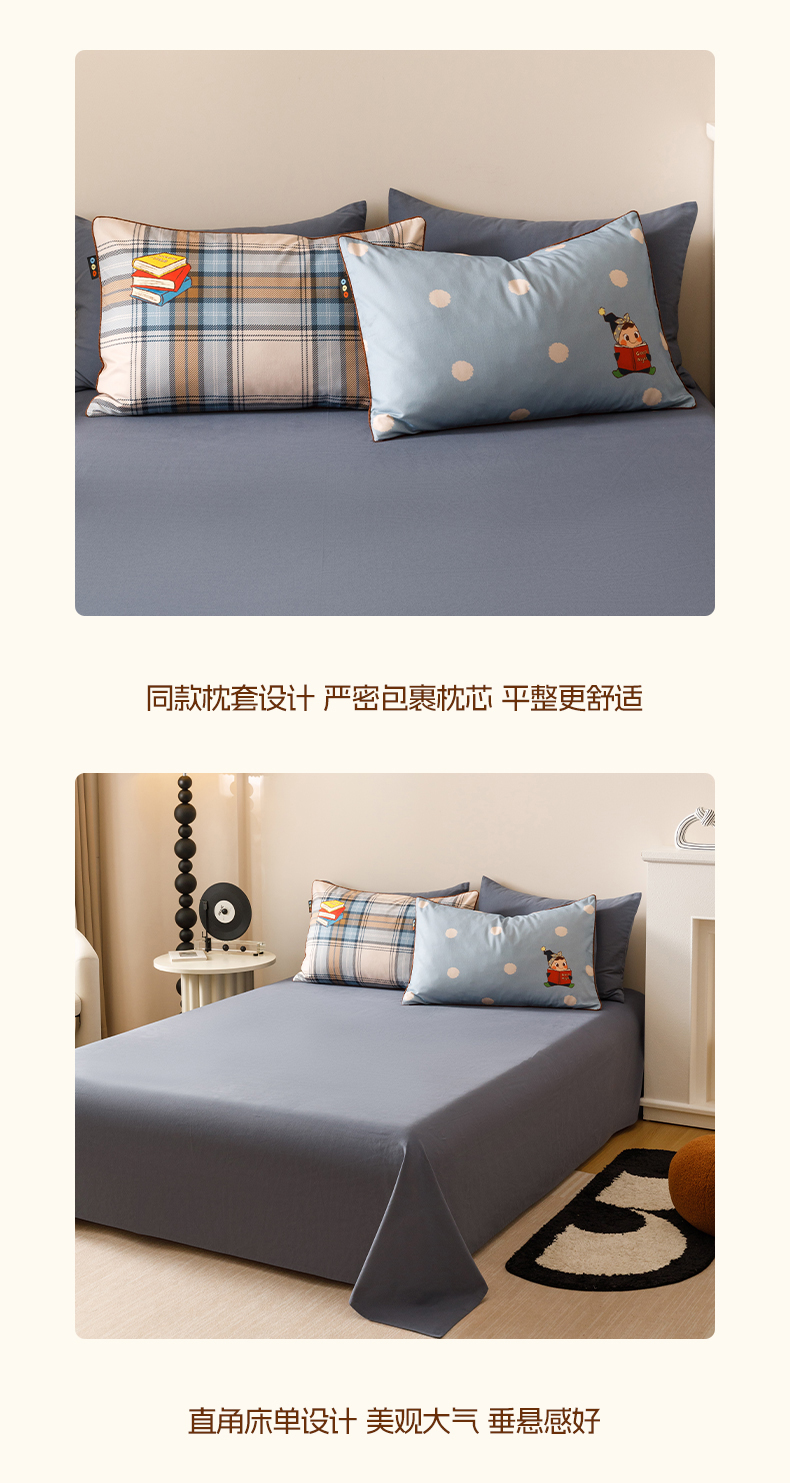 当前位置: 91家纺网 > 商品网购 > 床品套件 > 四件套 > 全棉普通四件套 > RYB红黄兰 2025新款全棉纯棉加厚磨毛大版数码印花嵌绳四件套 小小书童