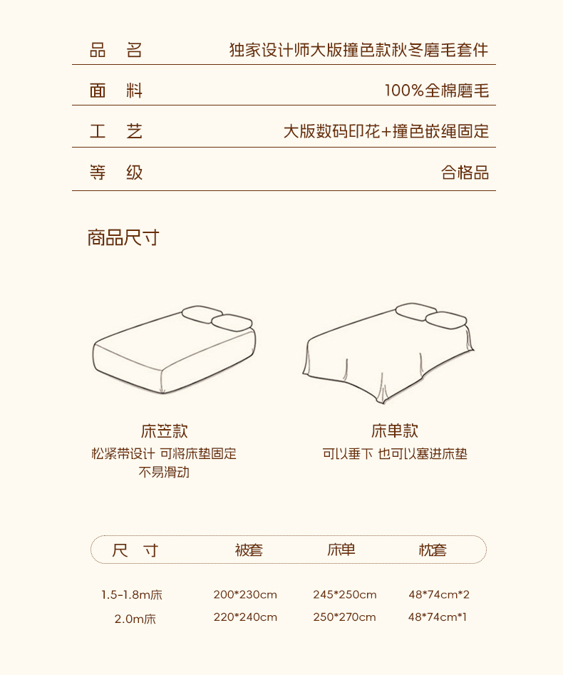【床笠款】1.5四件套-被套200x230 | ¥180.00 |